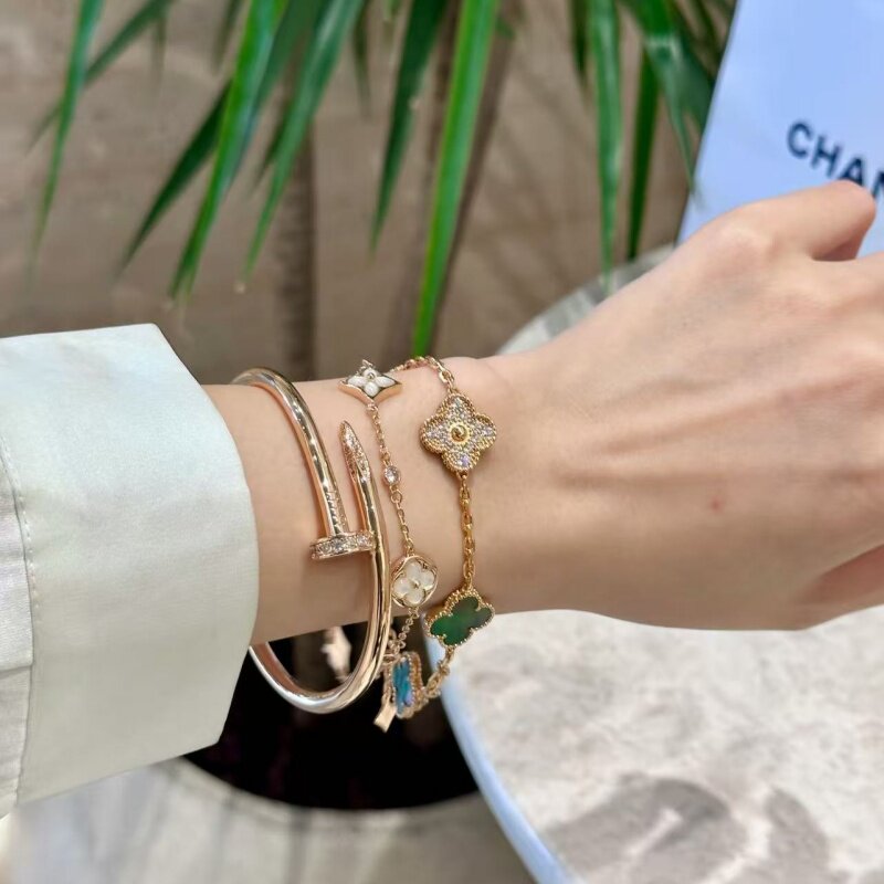 手镯女高级感轻奢小众窄版钛钢不掉色玫瑰金色钉子情侣手环黄金