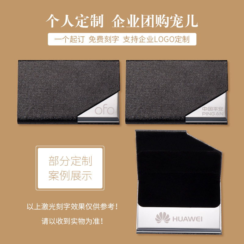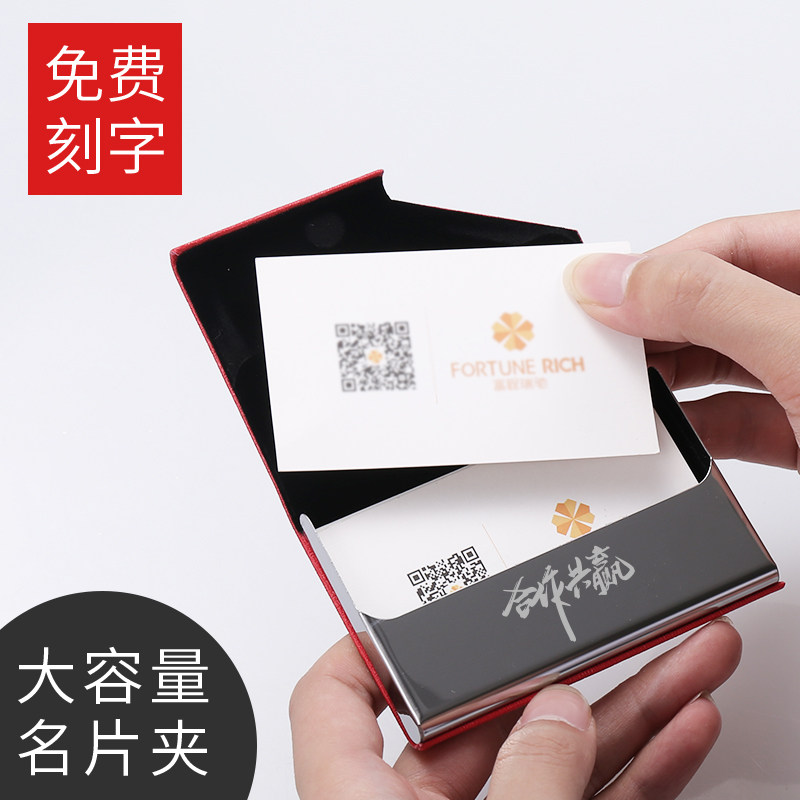 名片盒大容量商务男款女式名片夹金属皮面卡包可装银行卡信用卡包刻字免费定制LOGO