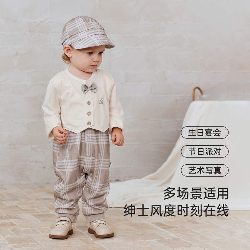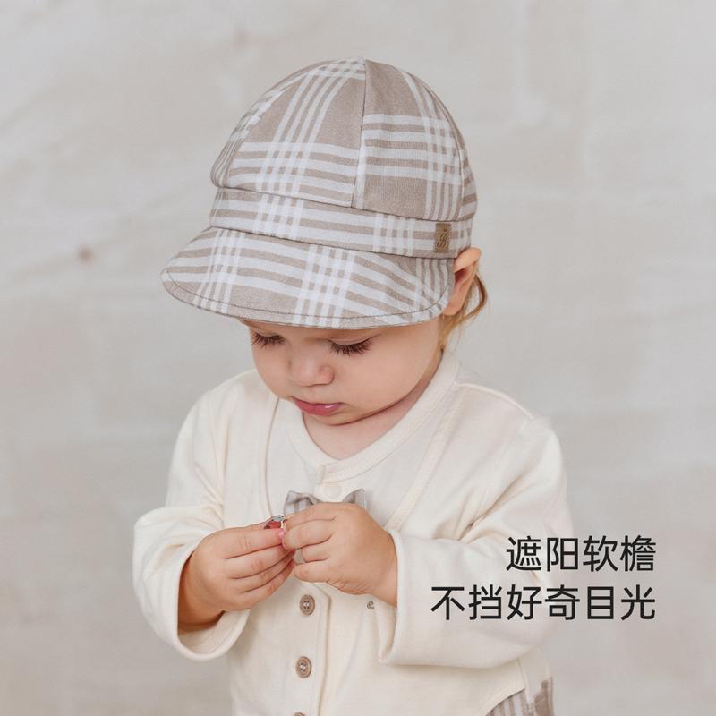 babylove男宝宝帽子春秋季纯棉鸭舌帽英伦风外出贝雷帽格纹软檐帽