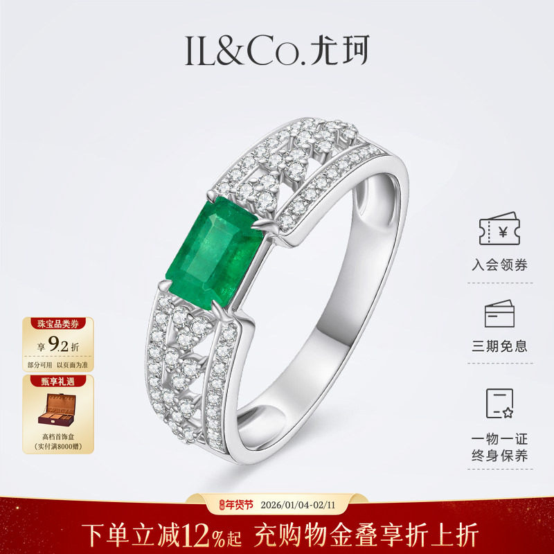 ILCO尤珂「月下光影」18K金天然祖母绿钻石女戒豪镶戒指高级手饰