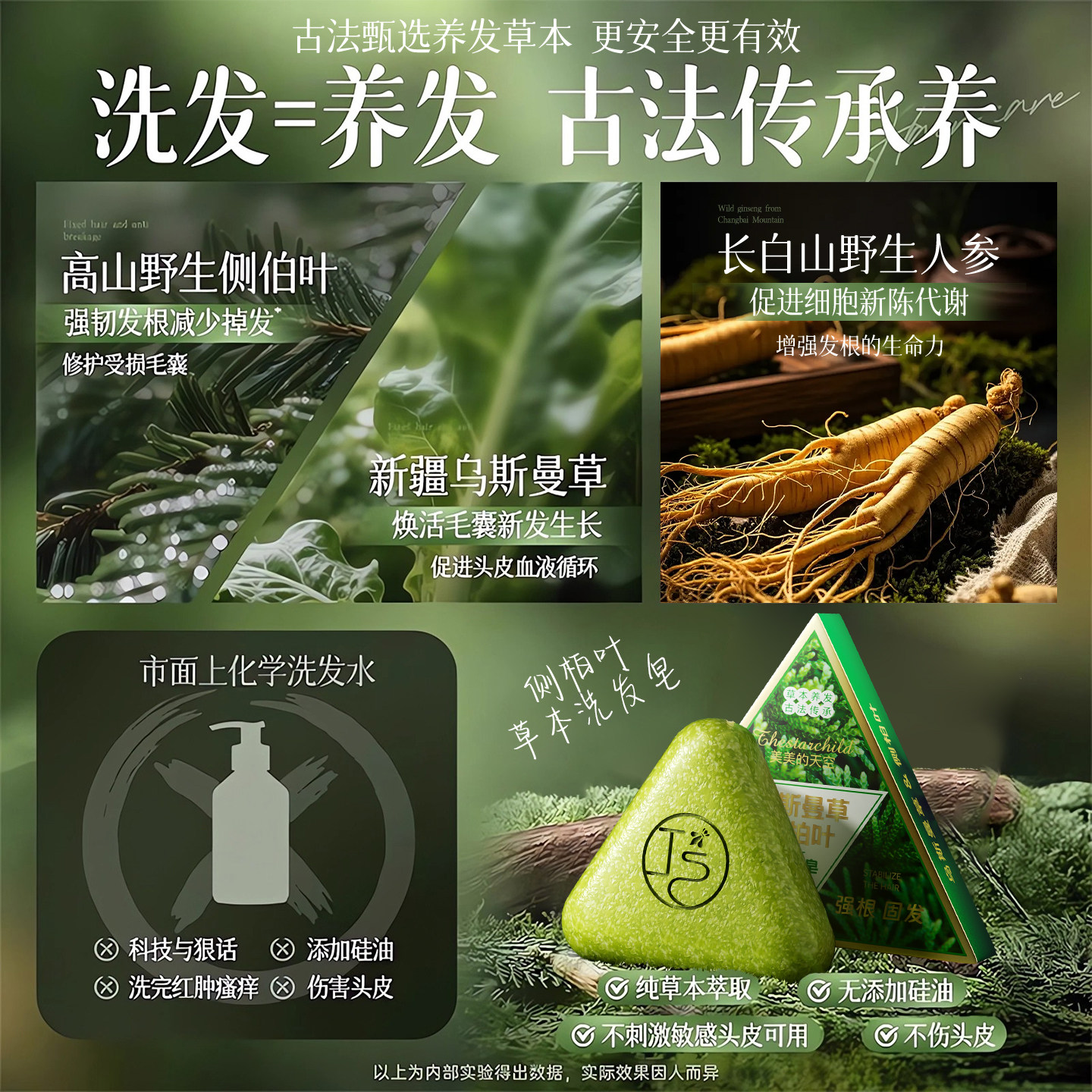 纯天然侧柏叶洗发皂新疆乌斯曼草洗头皂中药何首乌手工皂防断去屑