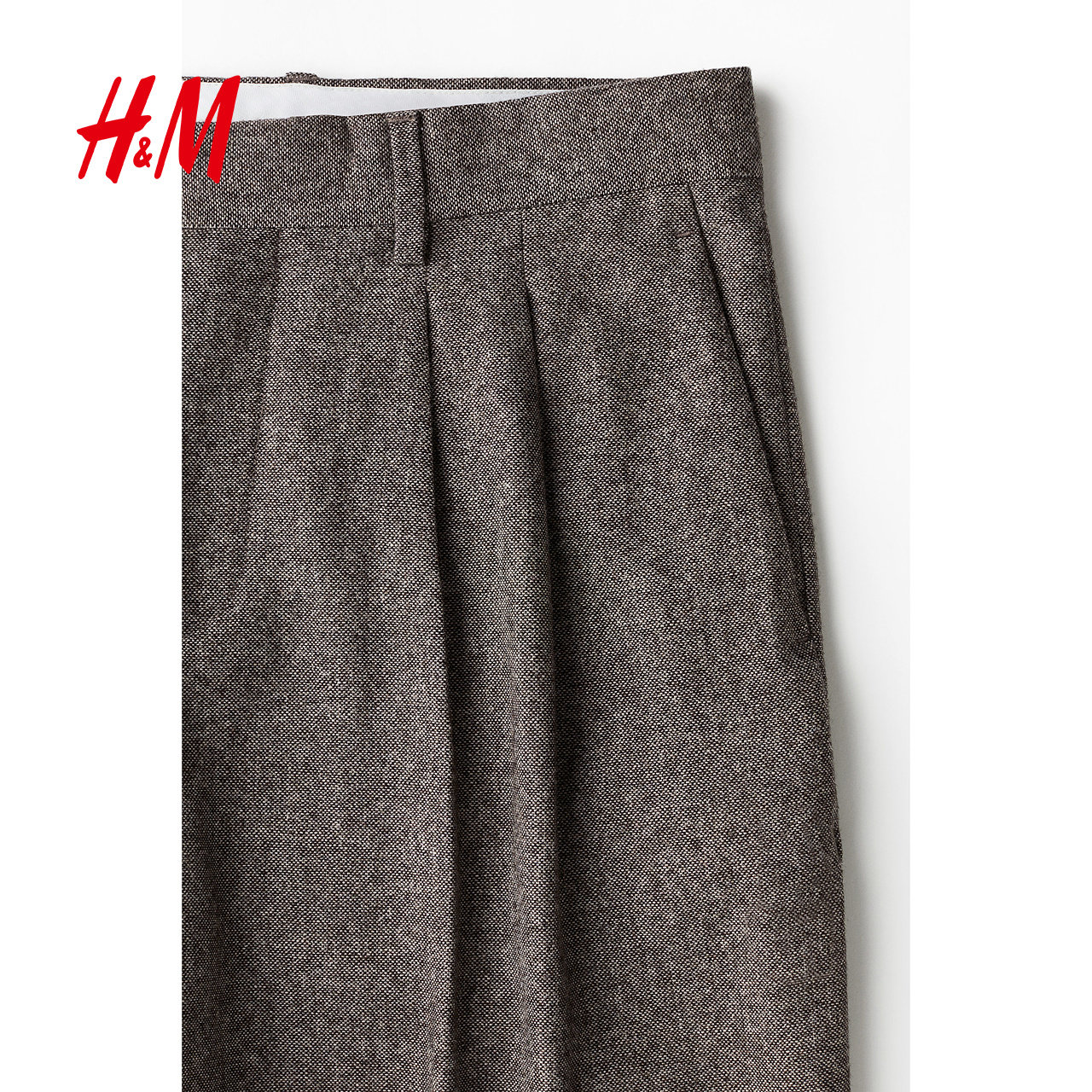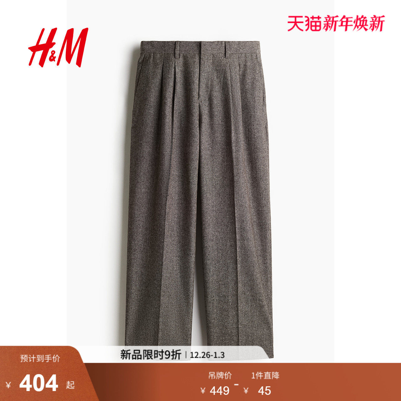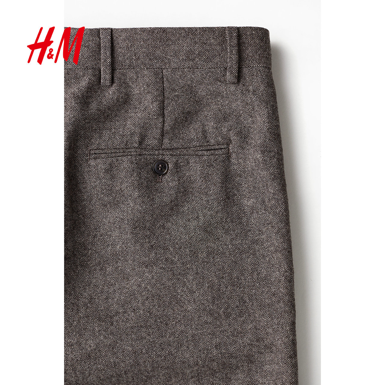 HM男装西裤冬季时尚休闲宽松版型羊毛混纺长裤1234903