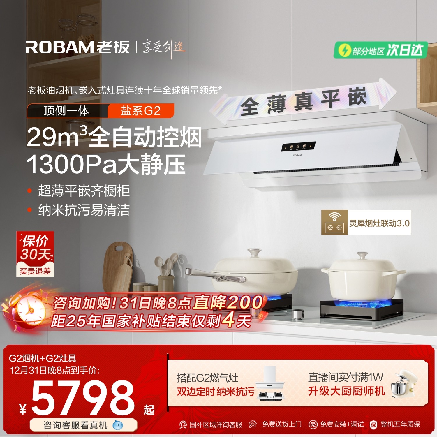 老板盐系G2顶侧一体大吸力油烟机家用燃气灶套装官方旗舰店正品