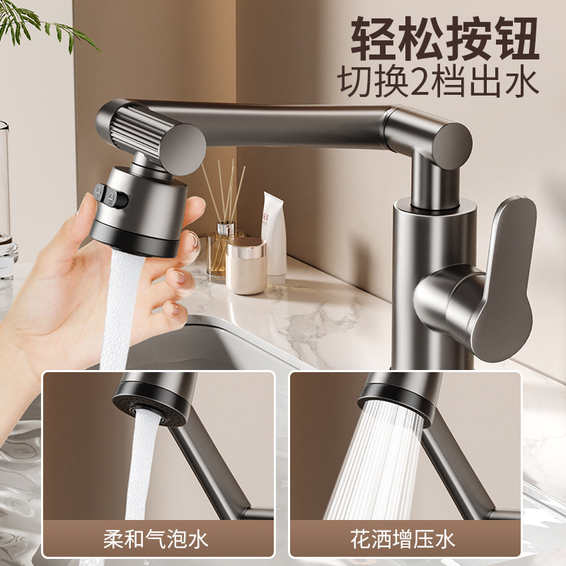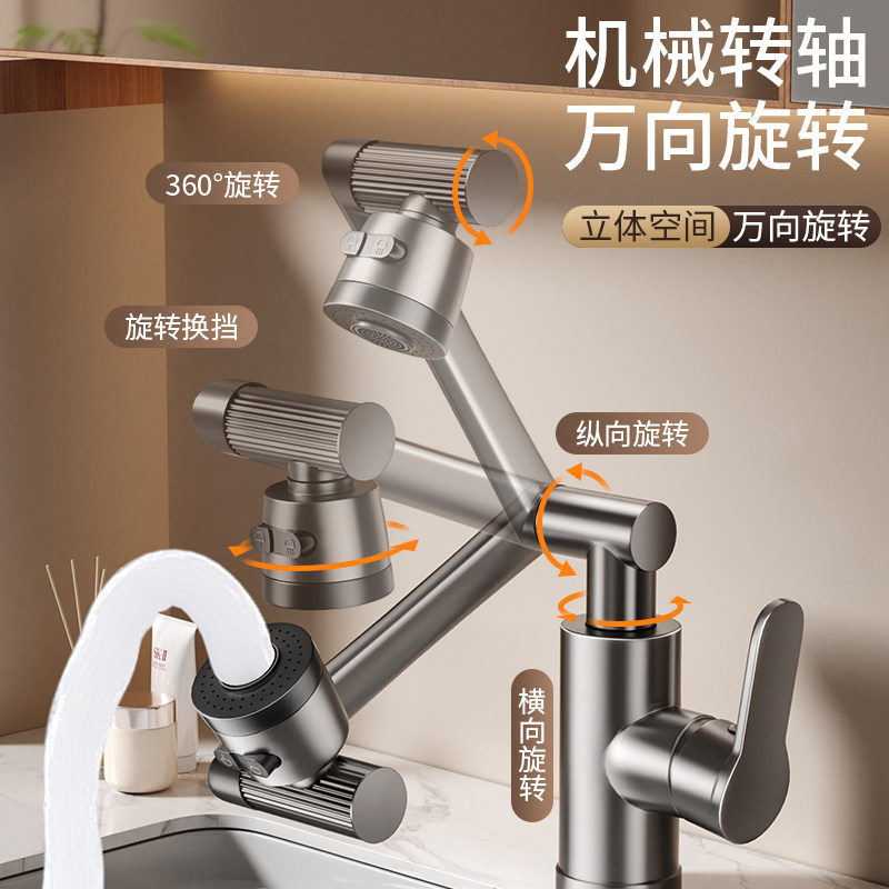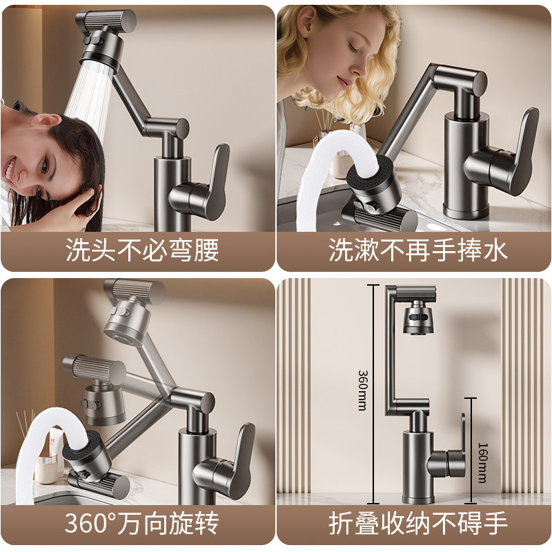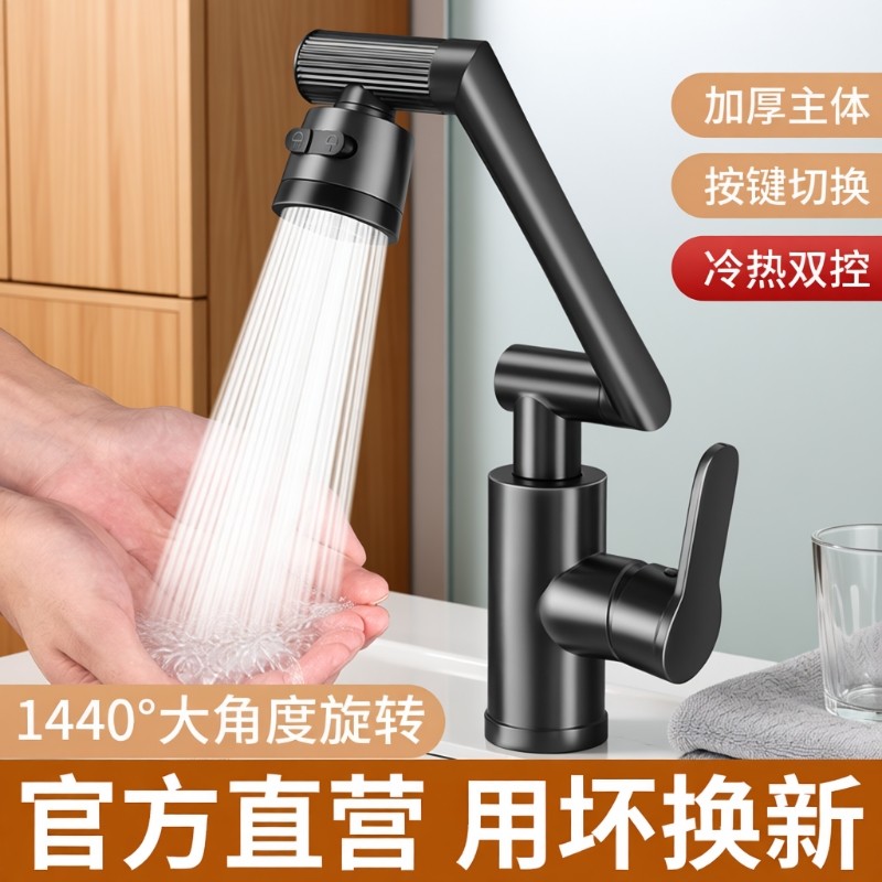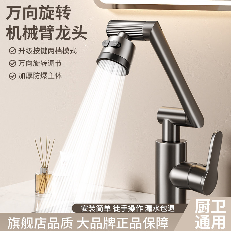 招财猫洗脸盆冷热水龙头卫生间万向机械臂浴室台洗脸面盆龙头家用