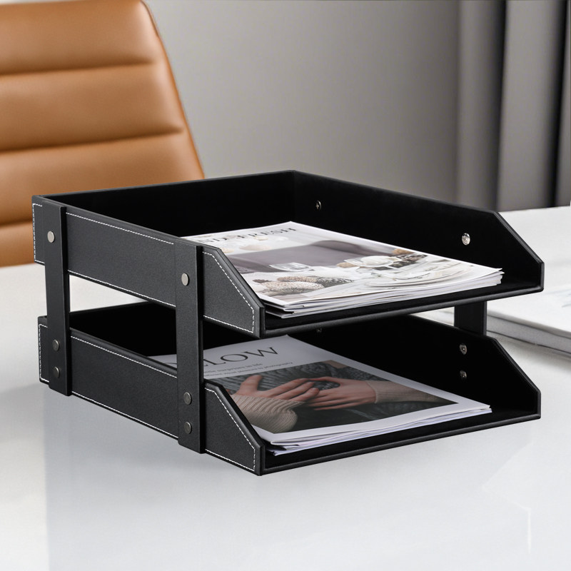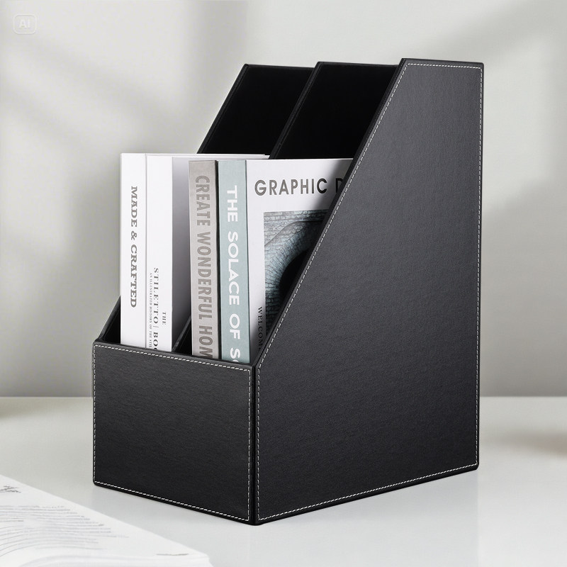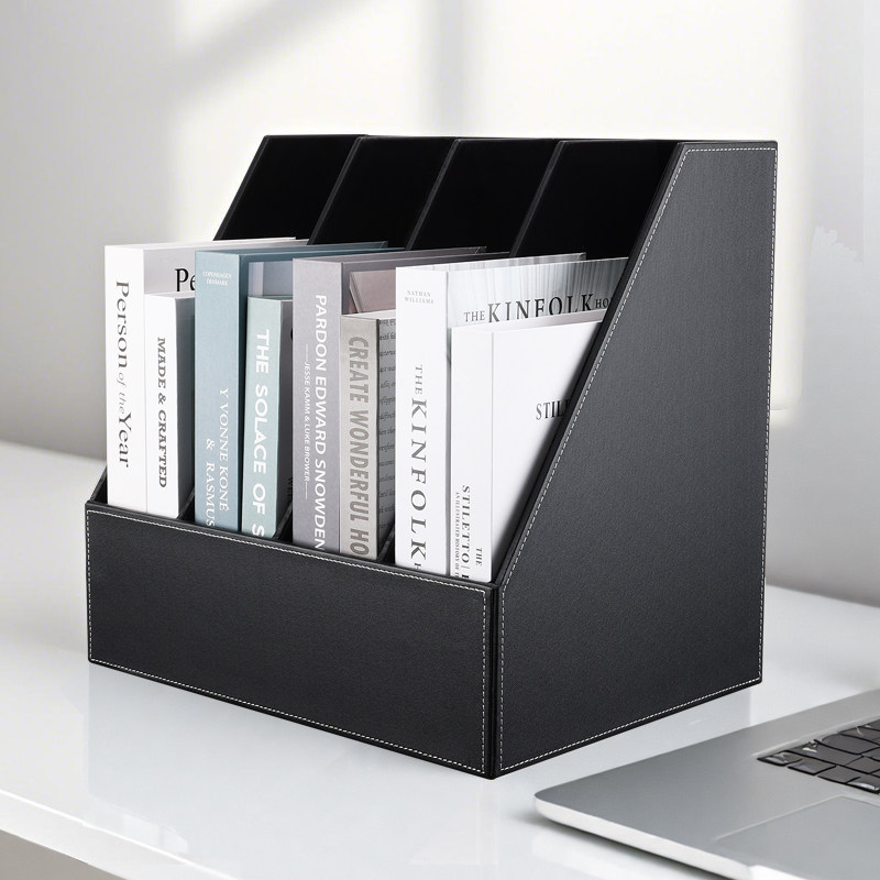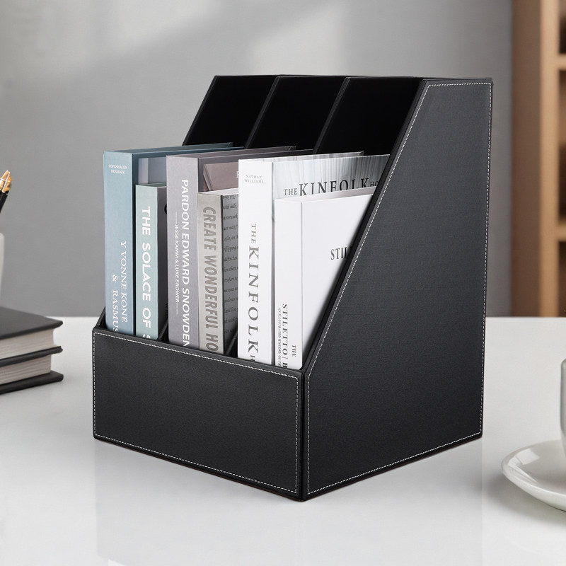 办公用品创意文件柜高档皮革文件框大容量桌面收纳四联文件座咖色