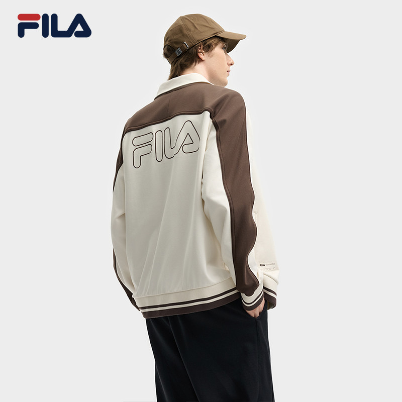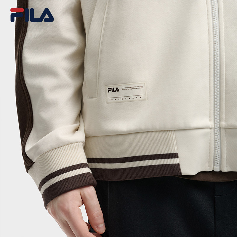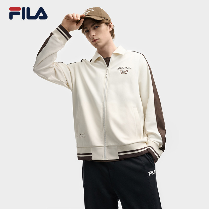 FILA 斐乐官方男士针织长袖外套2025秋新款时尚休闲宽松拼色上衣