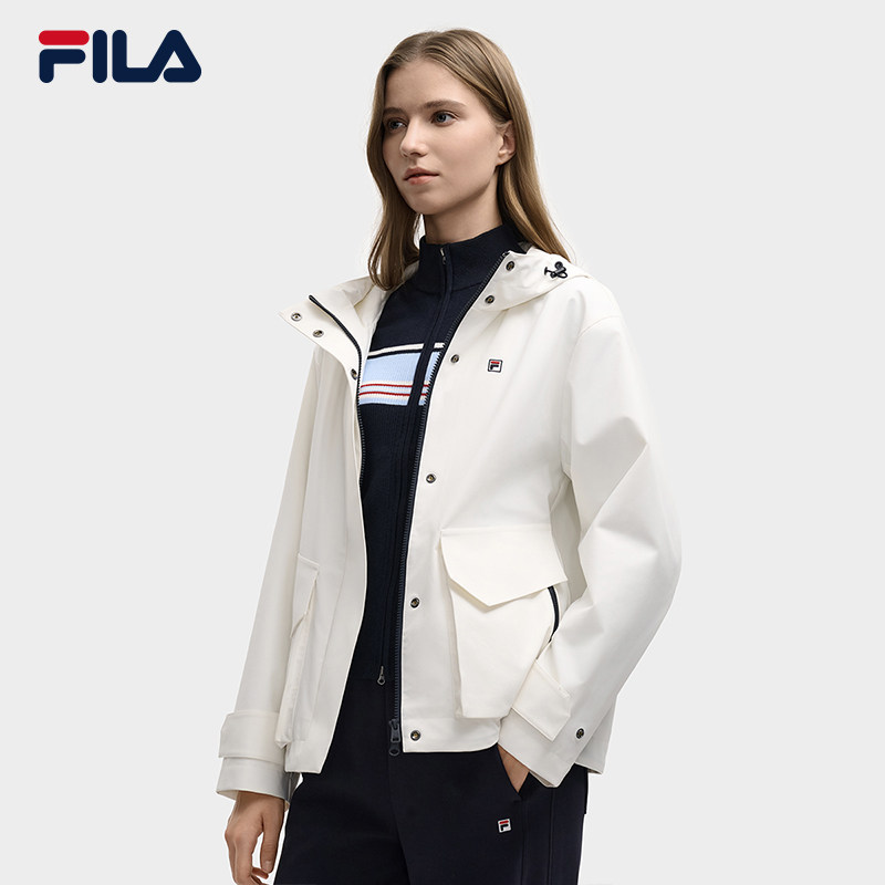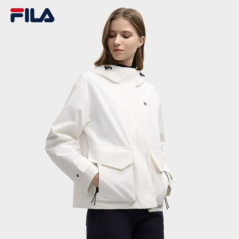 FILA 斐乐官方女梭织外套25冬新时尚休闲简约宽松连帽防泼水上衣