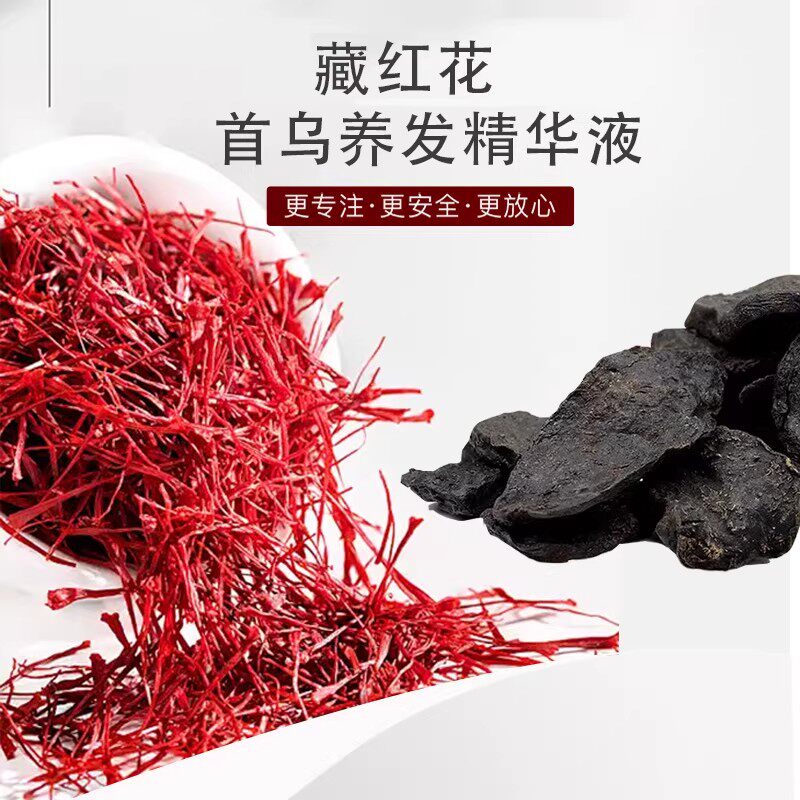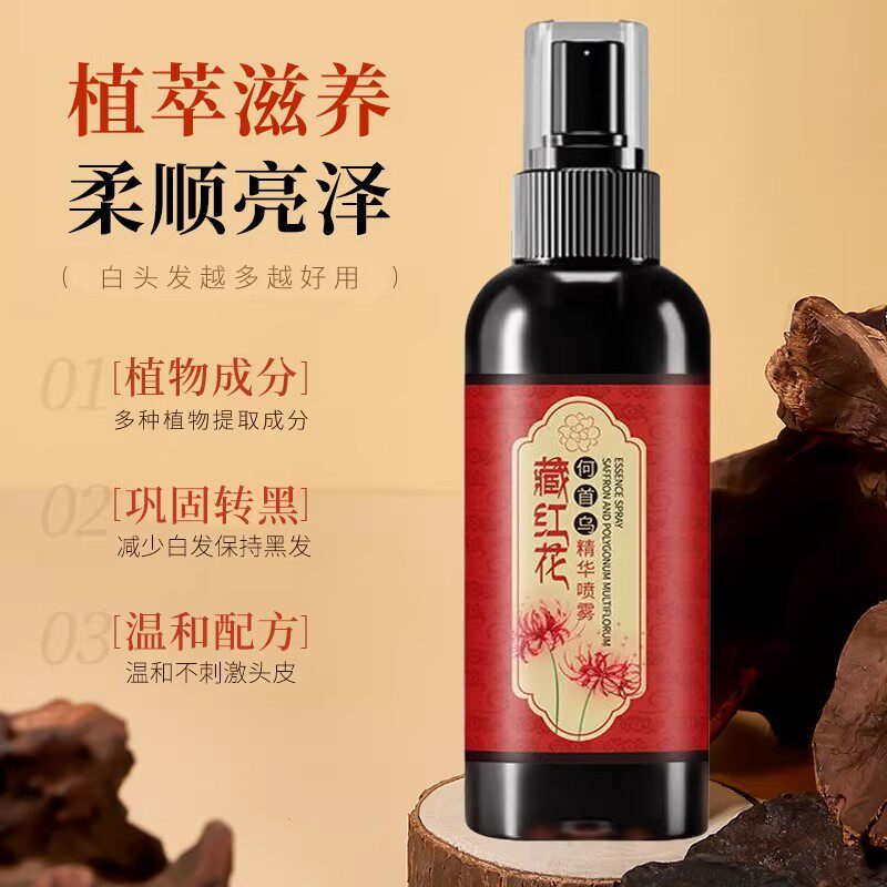 热销何首乌藏红花黑发养发精华液护发草本植萃喷雾白头发养护生长