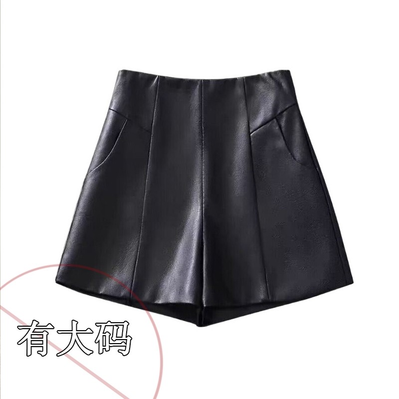 大码高腰皮短裤女新款秋冬季a字春秋显瘦pu皮裤阔腿外穿黑色靴裤