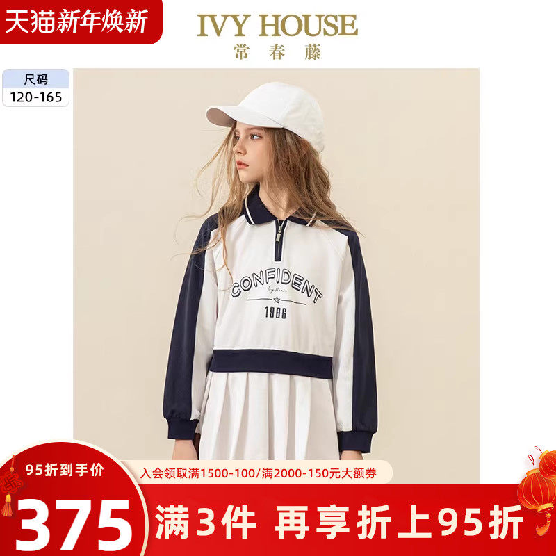 IVY HOUSE常春藤童装女童春秋假两件连衣裙POLO翻领棉混纺亲子装