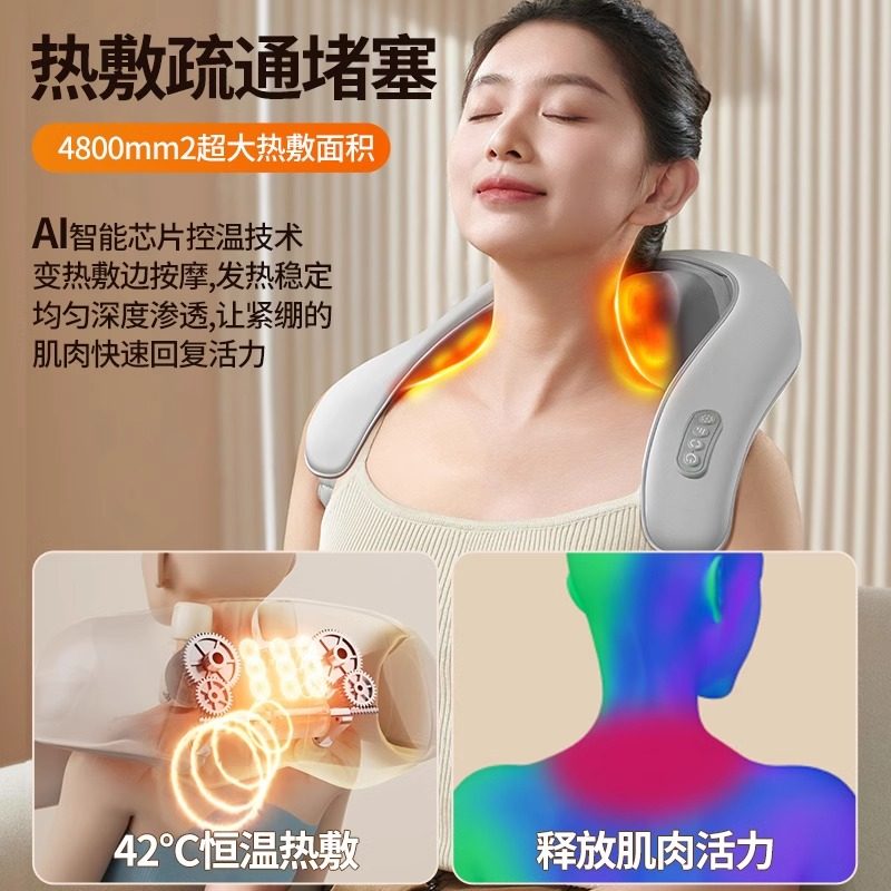 【圣诞礼物】小熊颈椎按摩器脉冲颈部按摩仪电动护颈揉捏按摩热敷