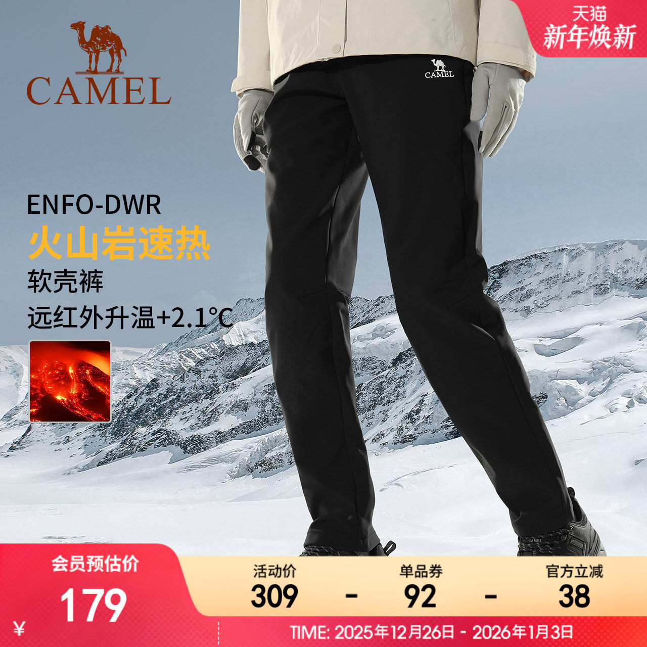 火山岩发热丨骆驼户外冲锋软壳裤男2025秋冬防风防水加绒登山裤女
