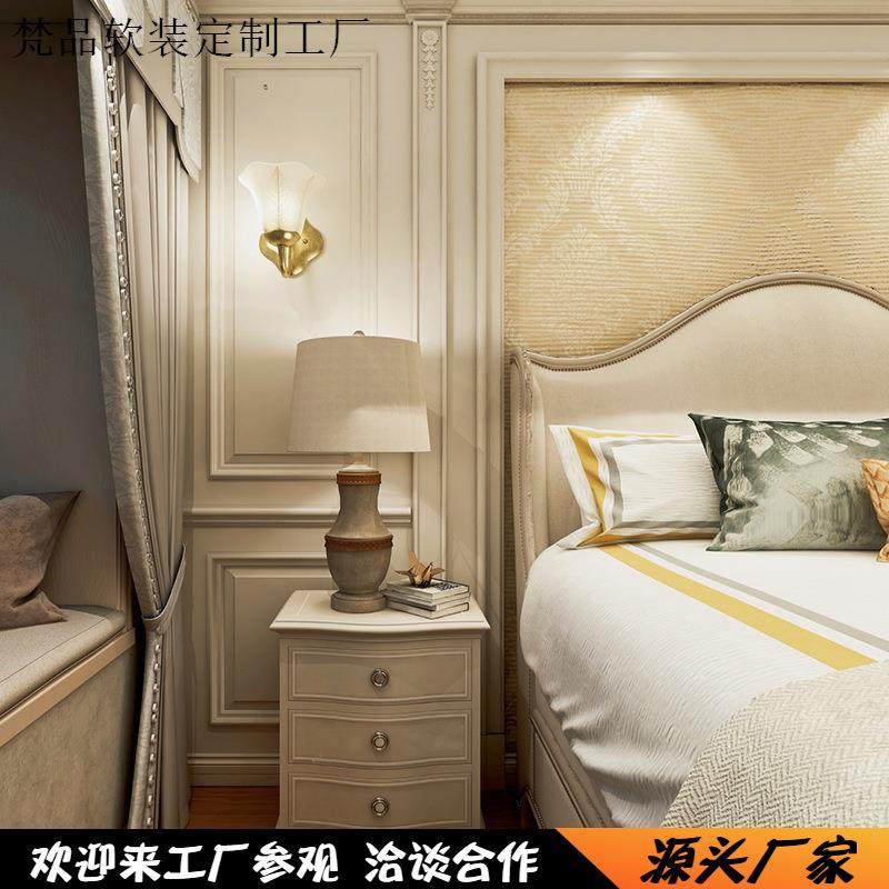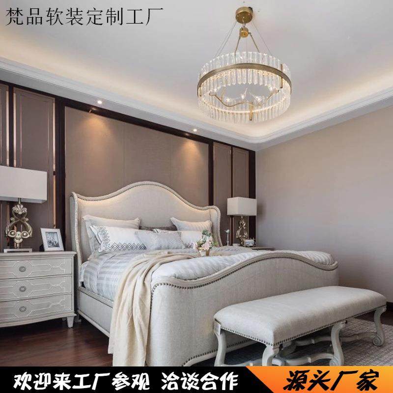 美式轻奢实木床卧室皇后铆钉床双人布艺软包1.8米样板间工具