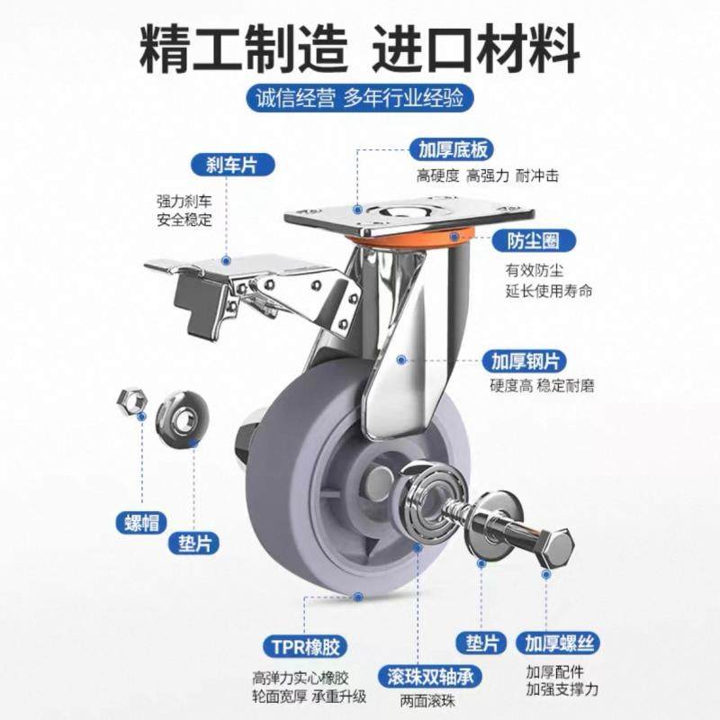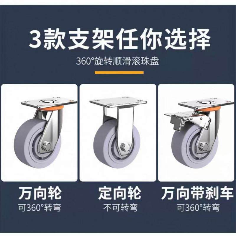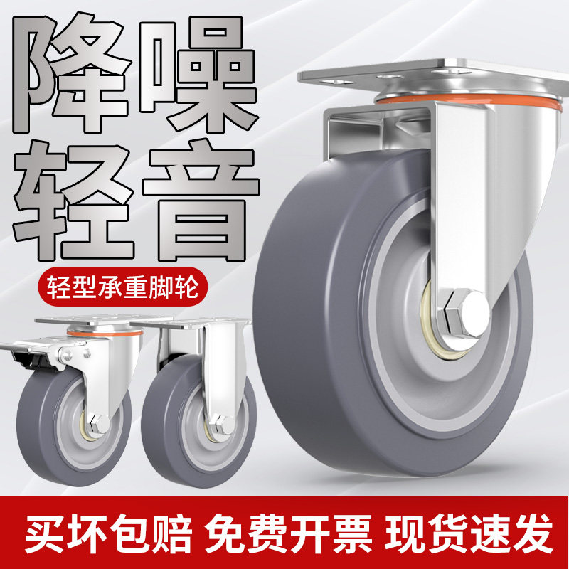 重型脚轮4寸5寸6寸8寸橡胶静音万向轮3寸带刹车手推车轮子耐磨