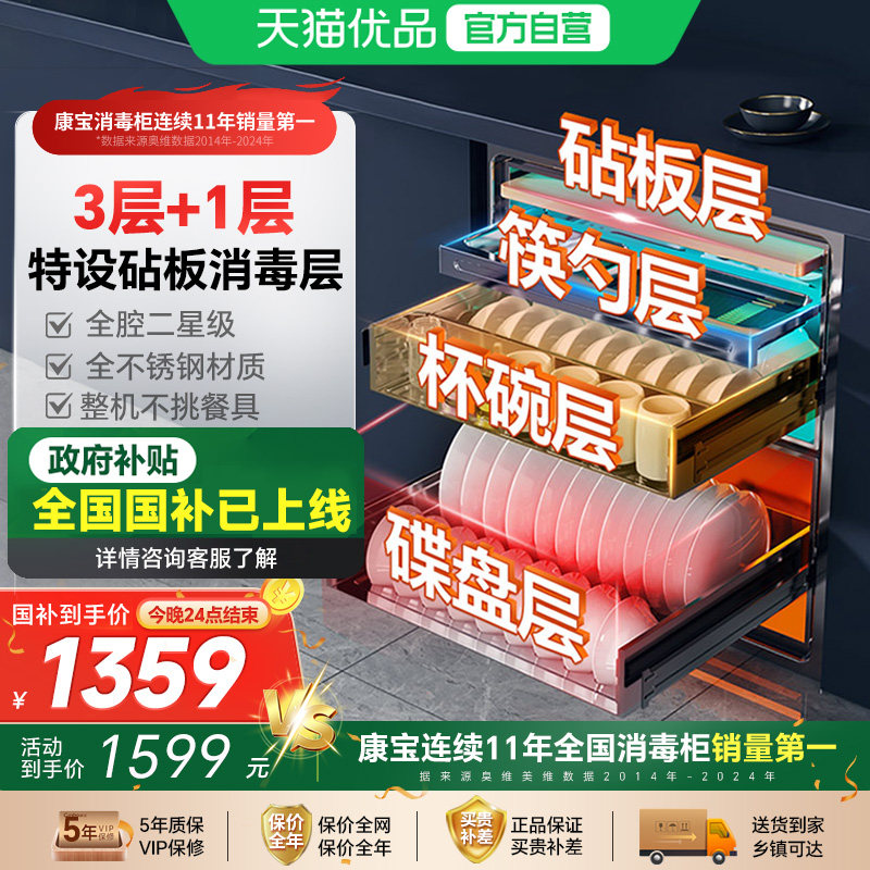 康宝磐石消毒柜家用嵌入式不锈钢EN590家用碗柜大容量烘干一体