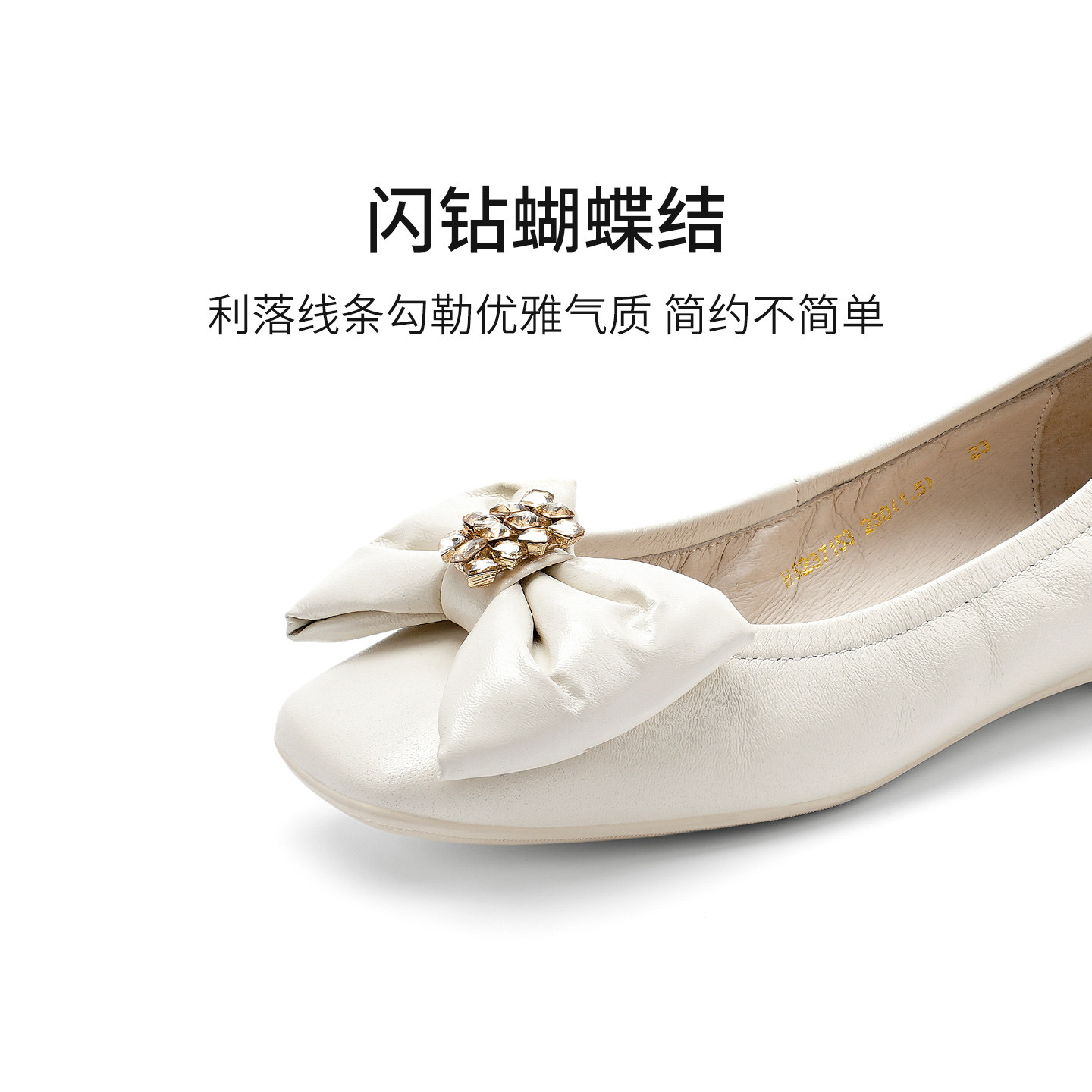 哈森商场同款甜美可爱方头芭蕾鞋蝴蝶结满邦女单鞋HS237153