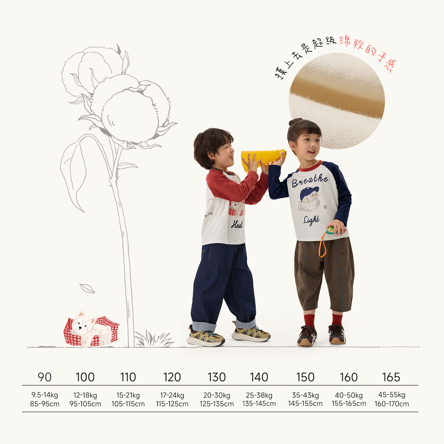 真维斯童装男童长袖t恤春秋款儿童秋季打底衫女大童白色纯棉秋衣