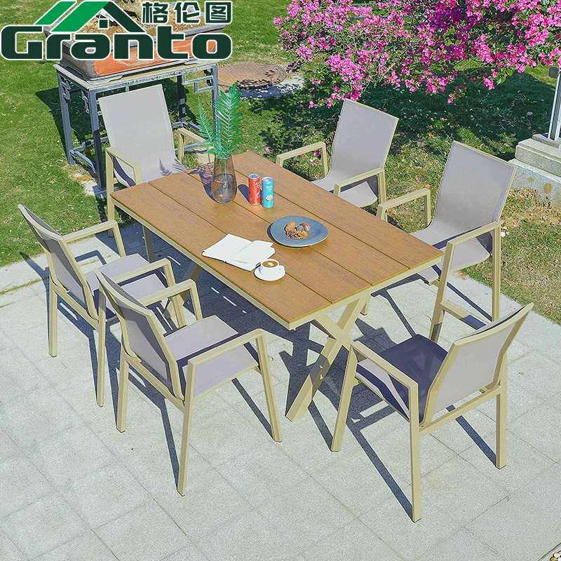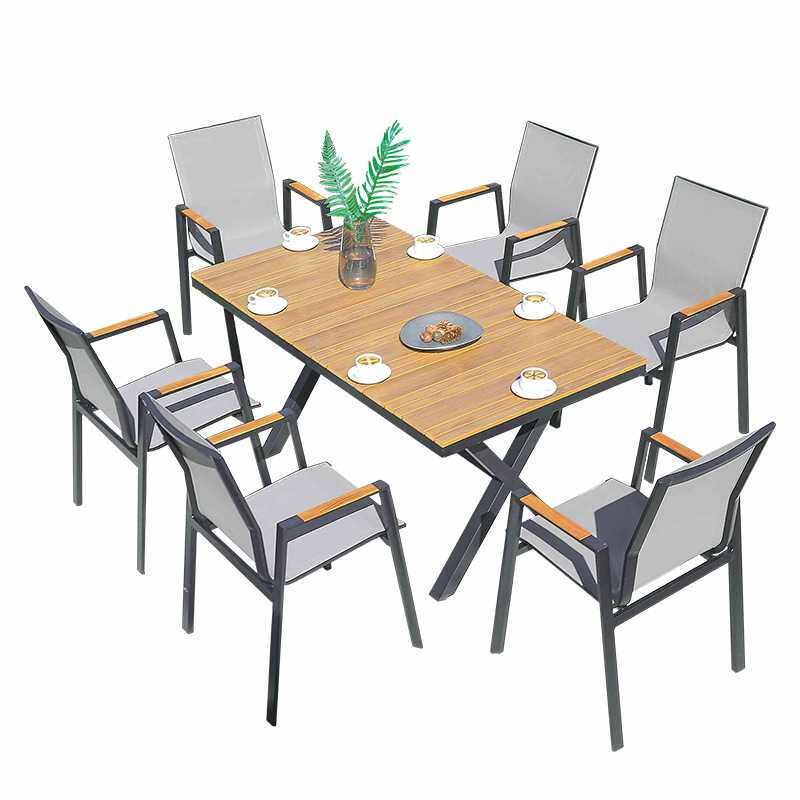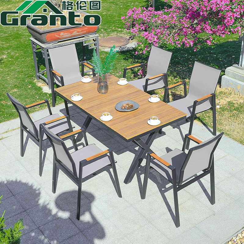 户外商用餐厅塔克桌椅组合阳台庭院网布铁艺休闲家具折叠堆高椅