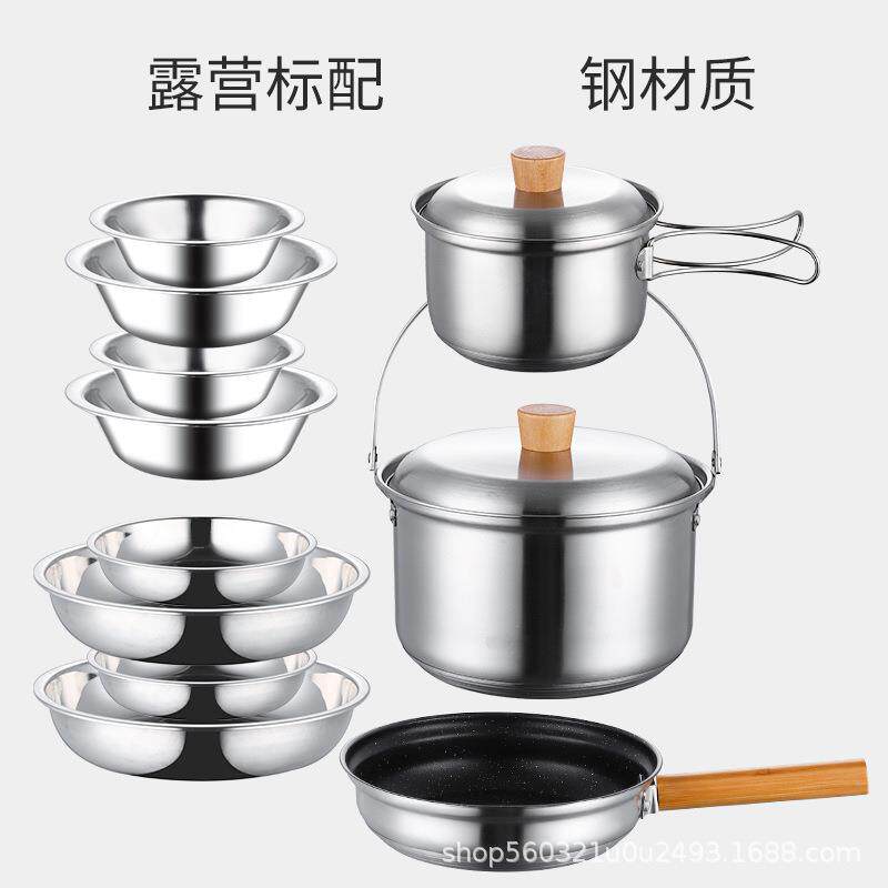 户外便携式露营锅具套装野炊装备厨具用品不锈钢加厚炊具锅