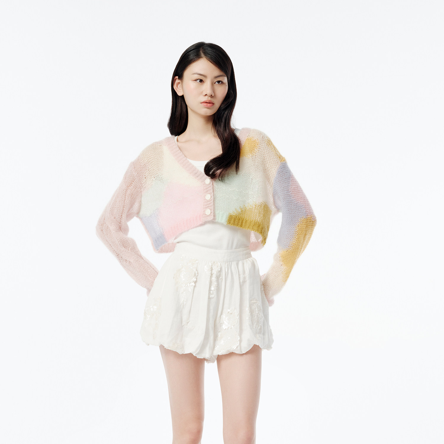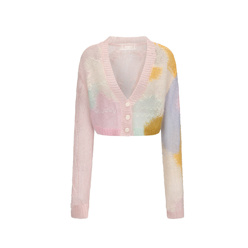 XIAOLI筱李 25春夏新品混色浮线设计马海毛针织短开衫女