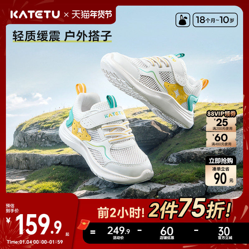 卡特兔童鞋儿童幼儿园运动鞋2025夏季小白鞋男童网眼女童跑步鞋