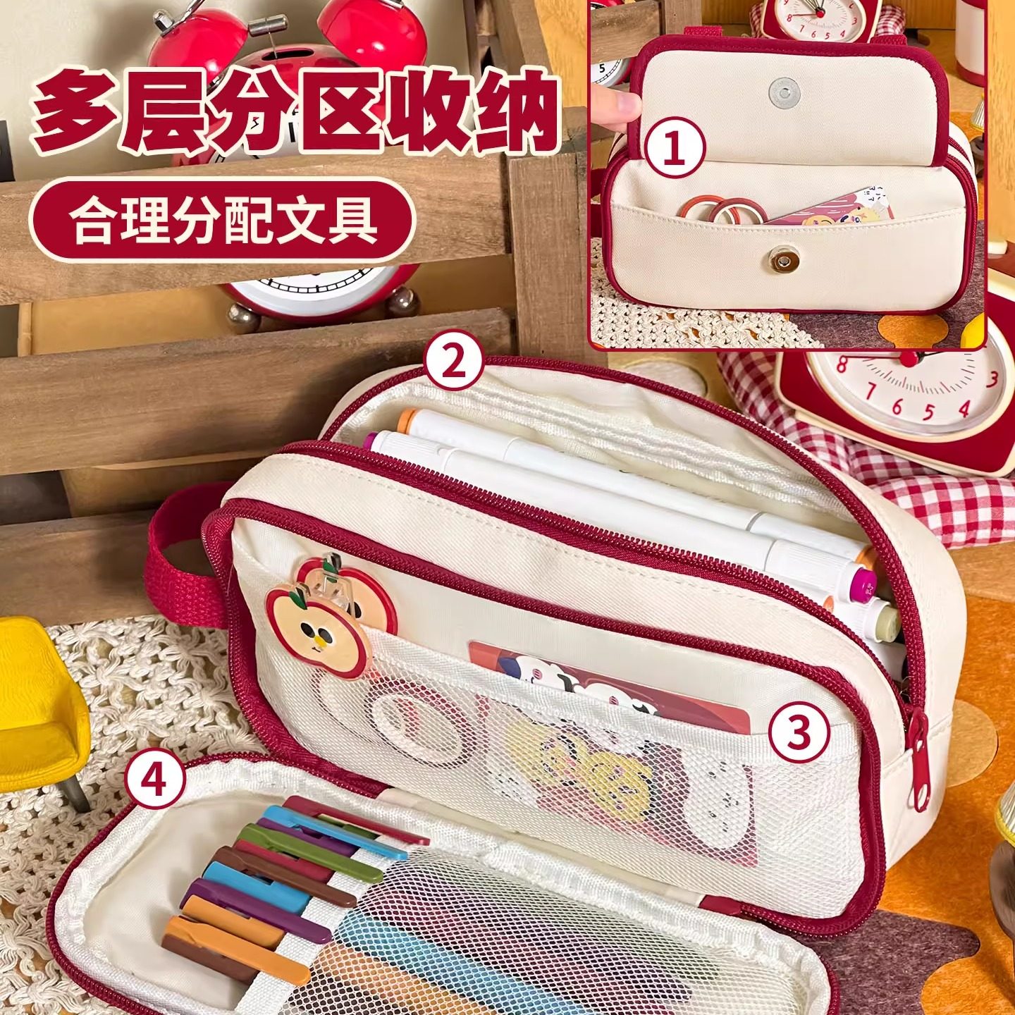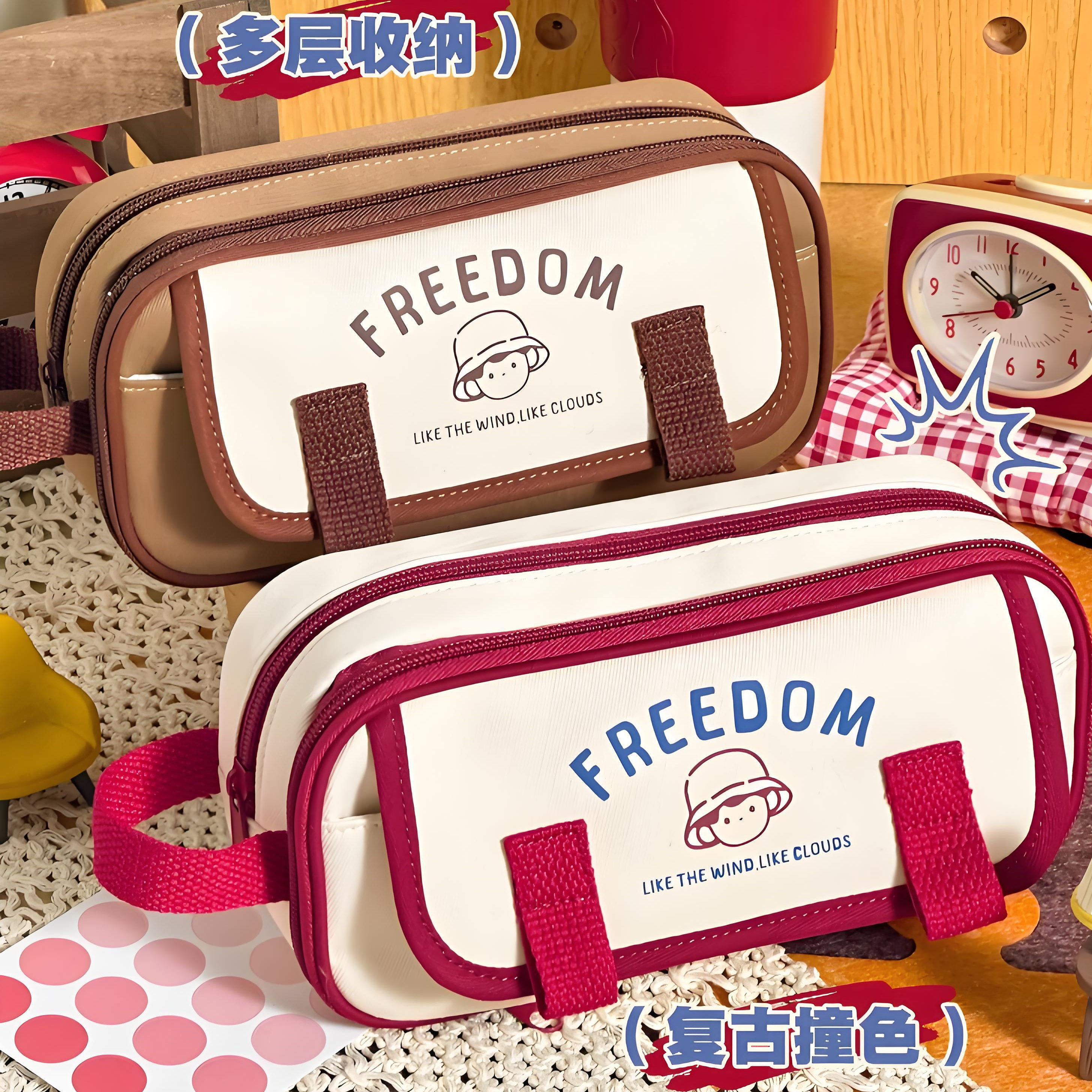 复古撞色笔袋ins风女生高颜值2025新款文具盒小学生大容量文具袋初中生男孩儿童多层收纳铅笔盒冷门小众笔袋