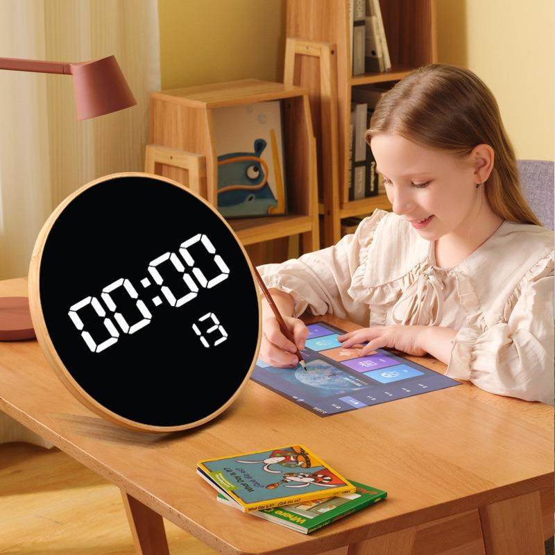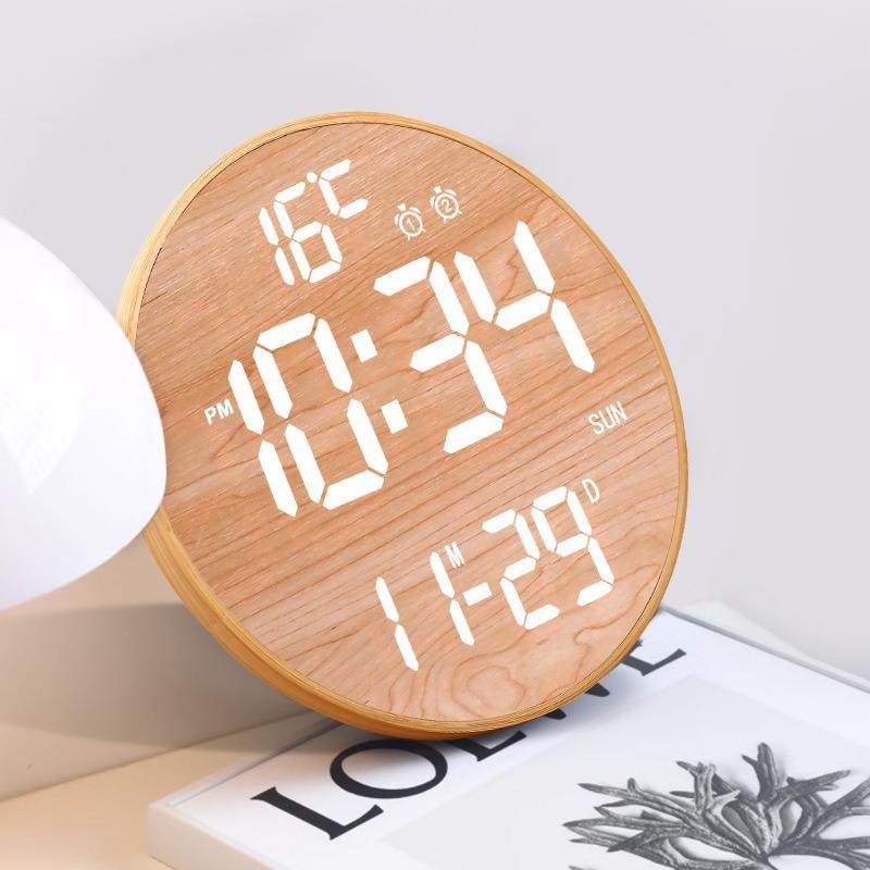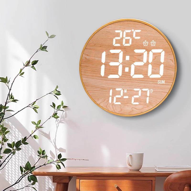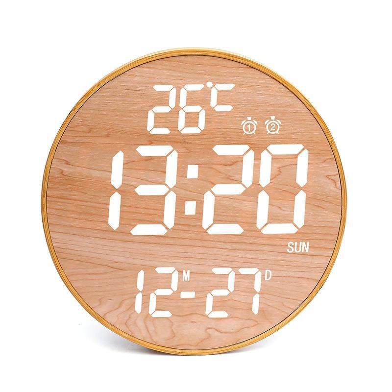 家具倒计时圆形竹子挂钟12寸大屏幕数字钟客厅万年历LED电子闹钟