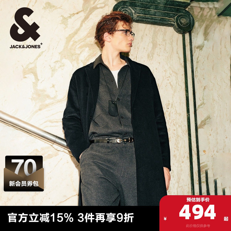 杰克琼斯2024年秋季毛呢大衣男含羊毛休闲商务中长夹克上衣男装