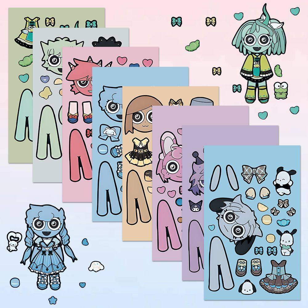 萌崽新款学霸学渣果冻贴纸安静书儿童免裁剪手工粘贴DIY女孩趣味玩具