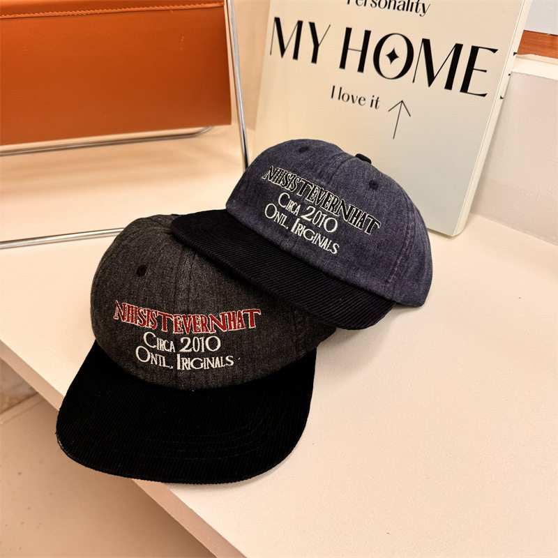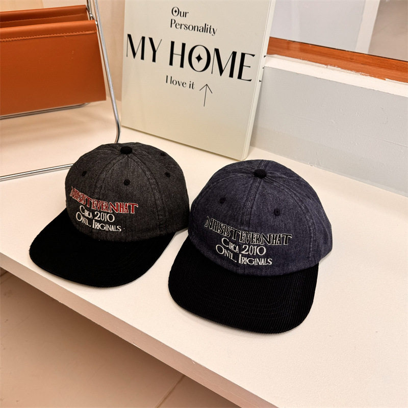 美式复古拼色灯芯绒平檐鸭舌帽女韩国小众街头潮牌情侣嘻哈棒球帽