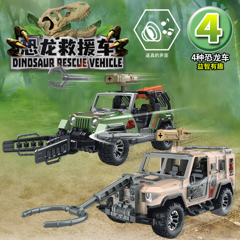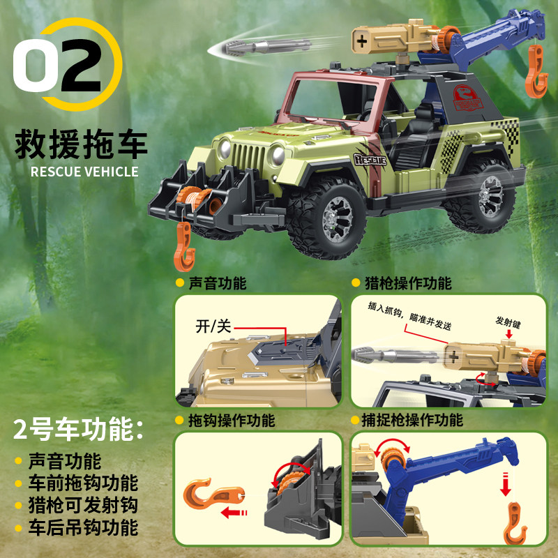 儿童恐龙救援车益智惯性吊车叉车玩具铲车模型汽车男孩子生日礼物