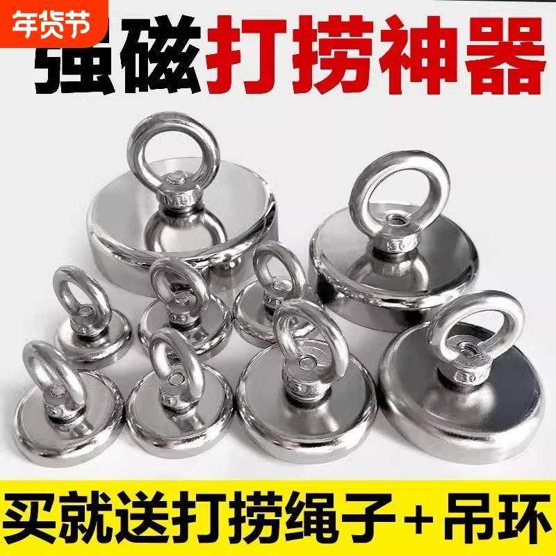 强磁力打捞神器圆形钕磁铁单面磁大号吸铁石防碰撞高强度磁性吸盘