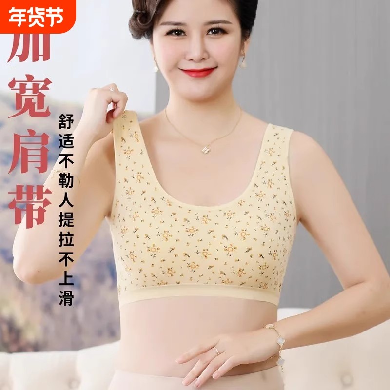 无钢圈中老年人文胸妈妈背心式妇女老人加全棉质大码内衣女文胸罩