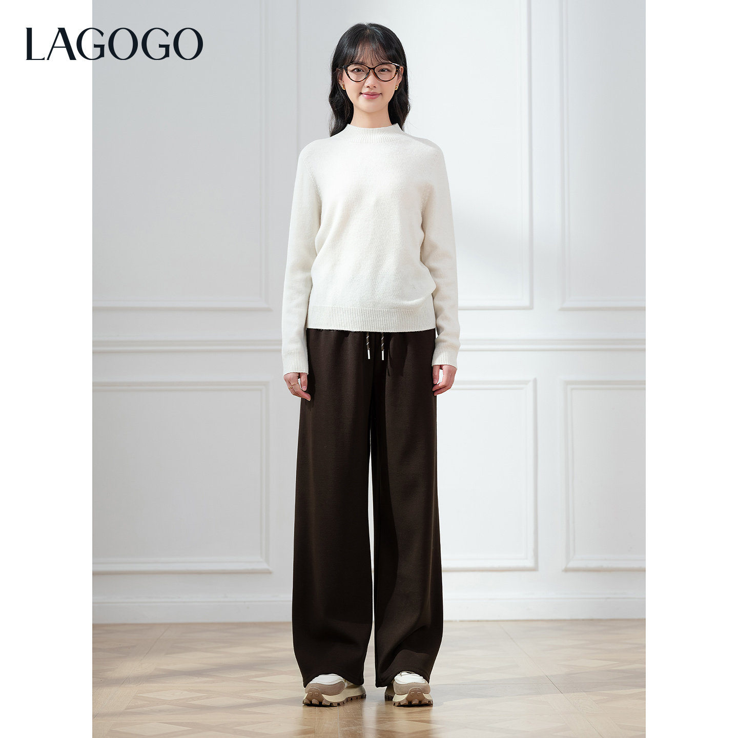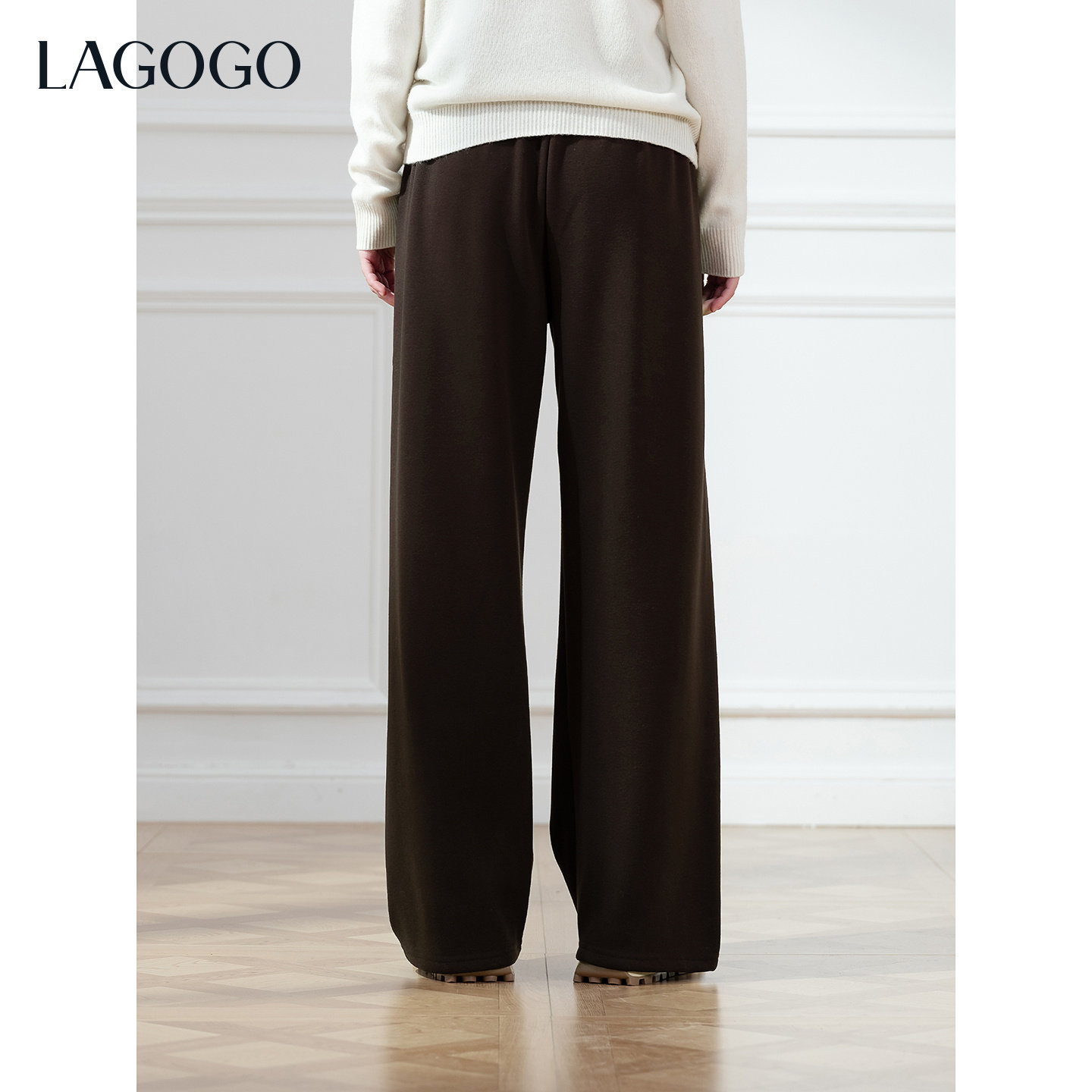 LAGOGO咖啡色保暖加绒糯米裤女拉谷谷2026年春新款高腰阔腿休闲裤