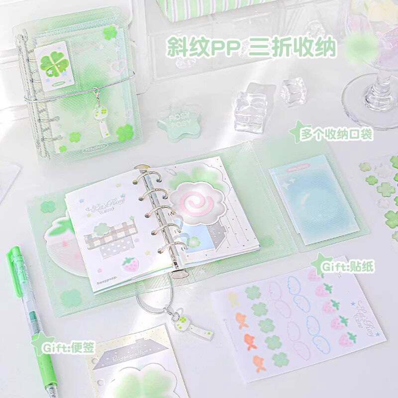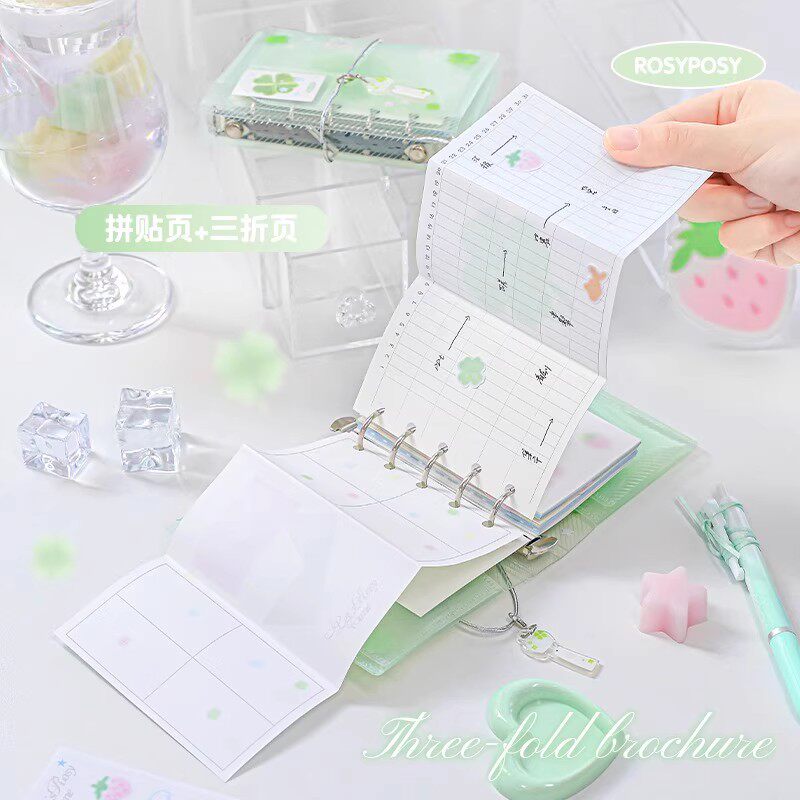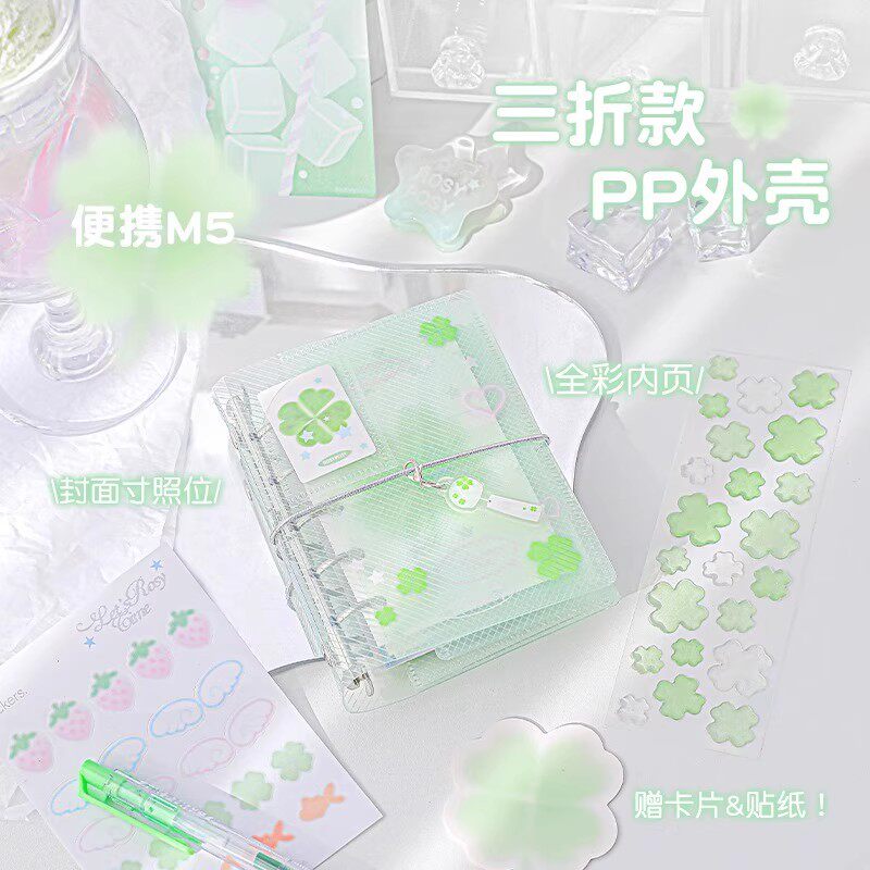 RosyPosy柔设三折绑带M5手账本四叶草金鱼笔记本本子ins风日记本