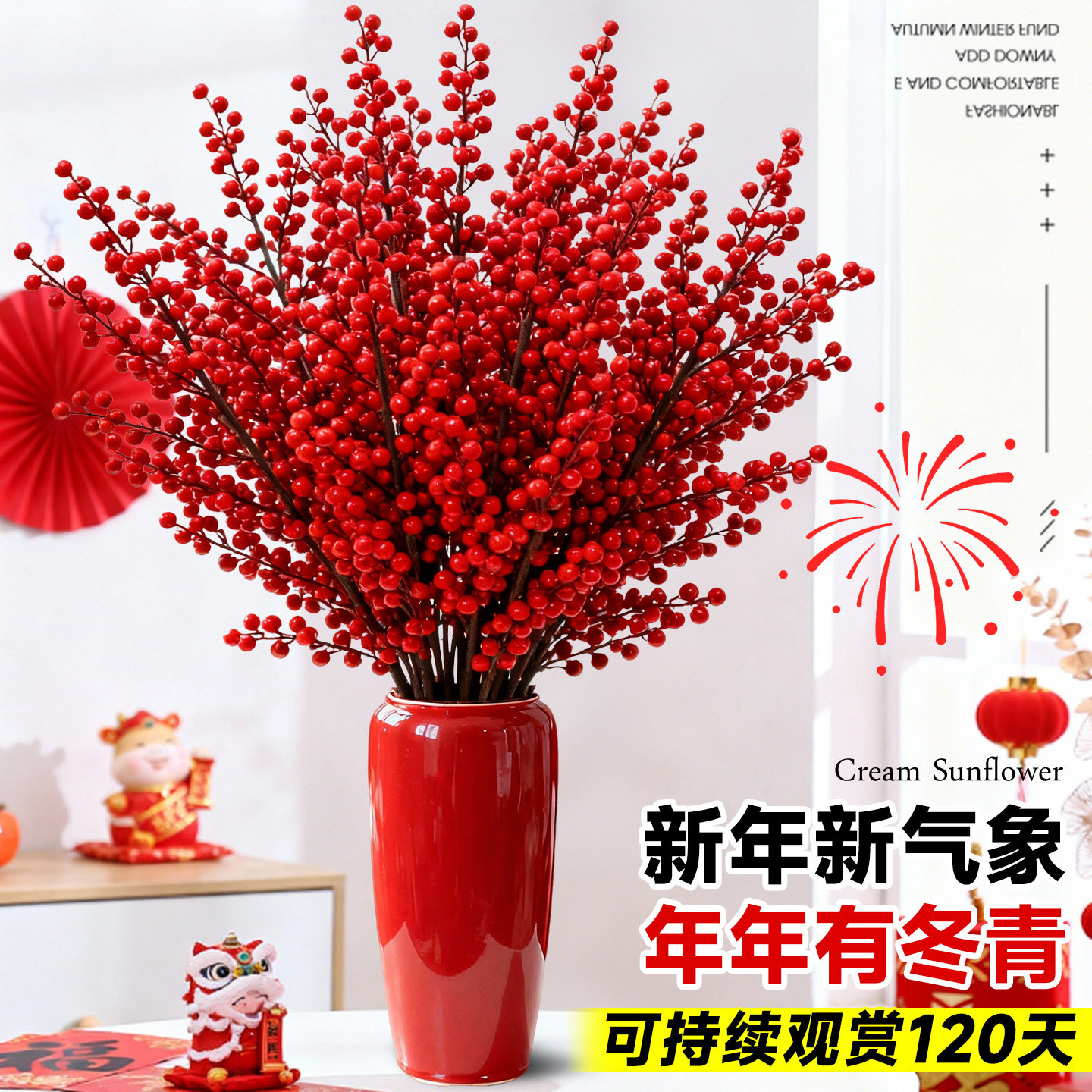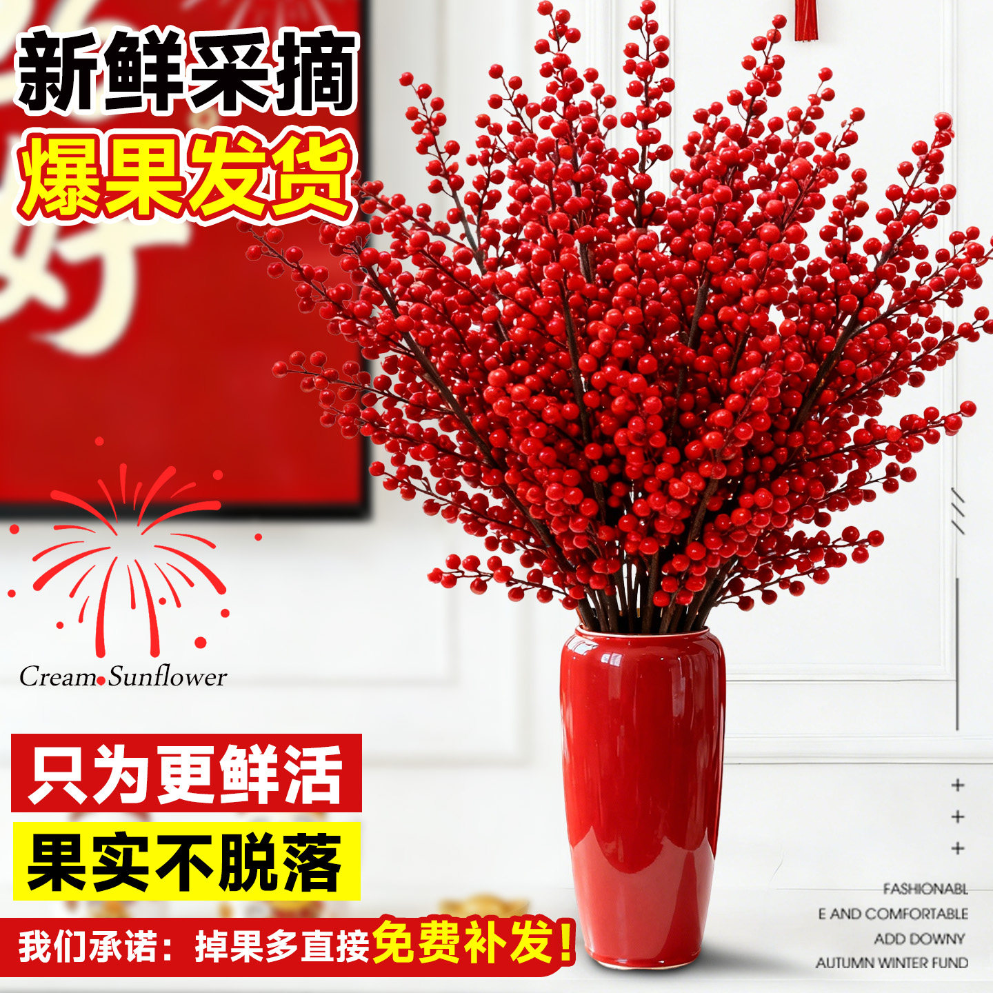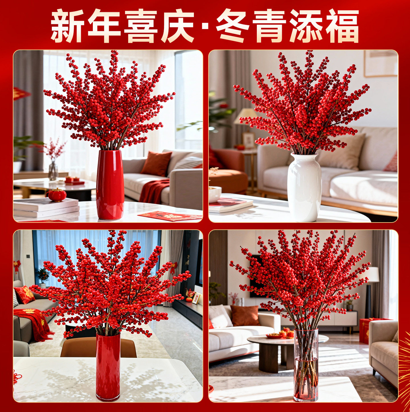 进口北美冬青红果真花鲜切花红豆鲜花室内水养植物花卉银柳年宵花