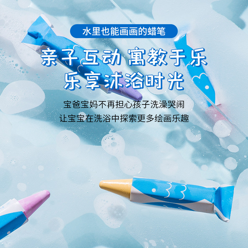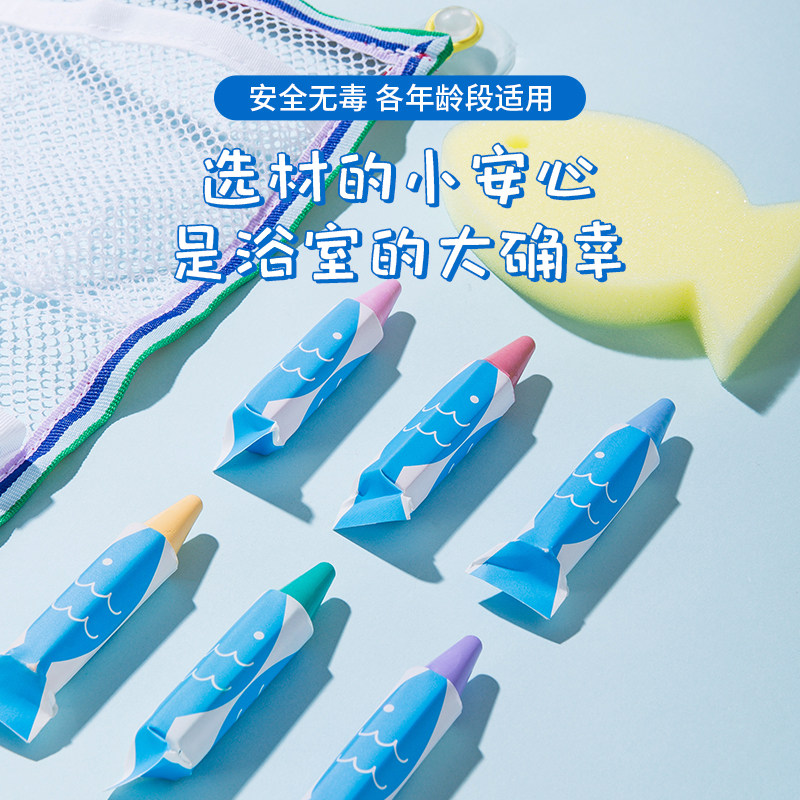 日本进口kitpas可派色浴室蜡笔6色水里可画易清洗儿童浴室中性蜡笔沐浴洗澡玩具现货