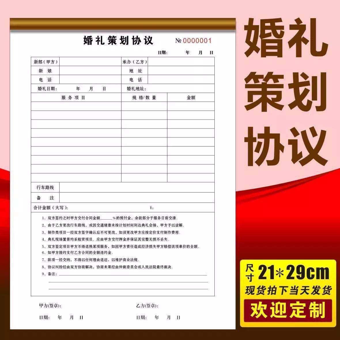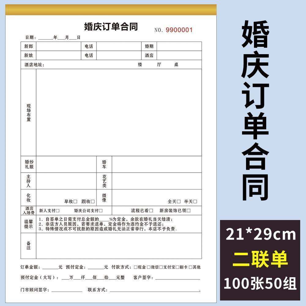 婚庆订单本婚礼策划协议定做结婚服务订单订制跟妆跟拍影楼合同书