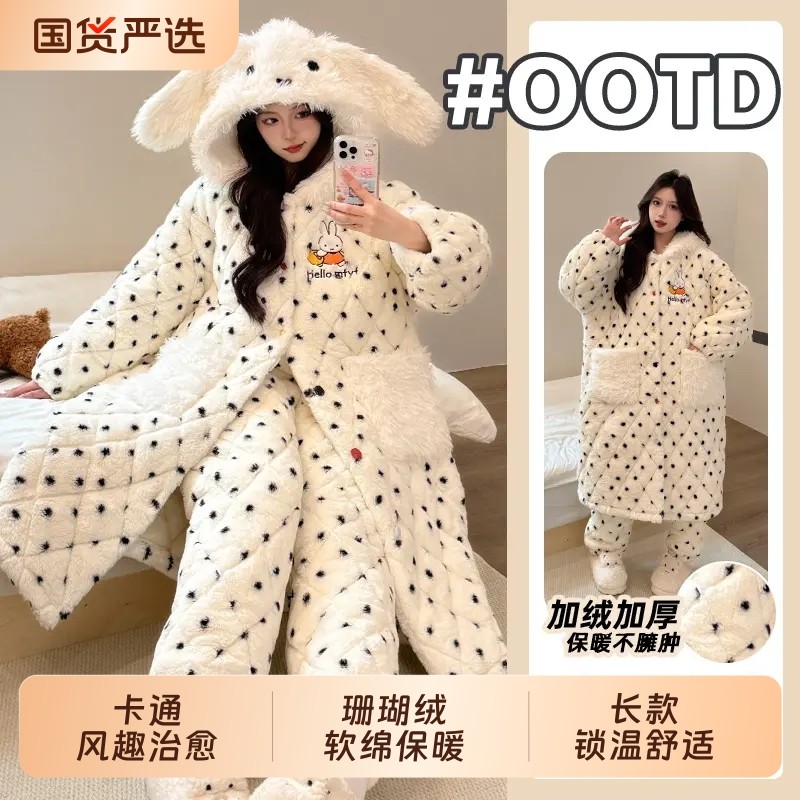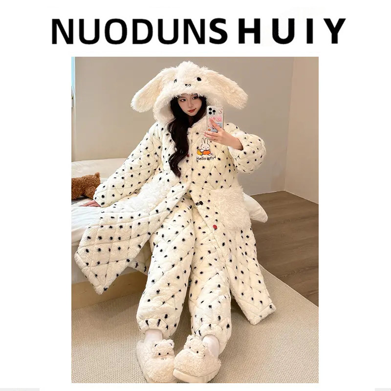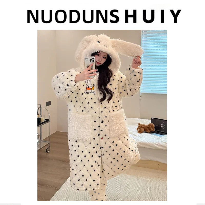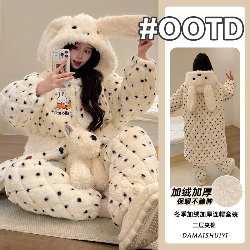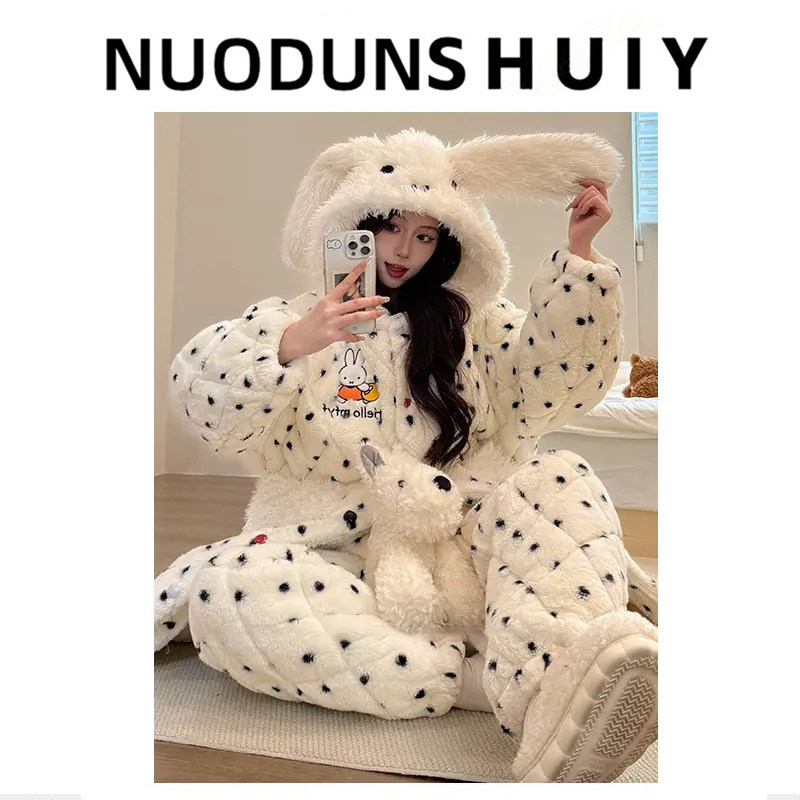 米菲睡衣女2025新款冬季连帽加绒加厚甜美风可外穿女士保暖家居服