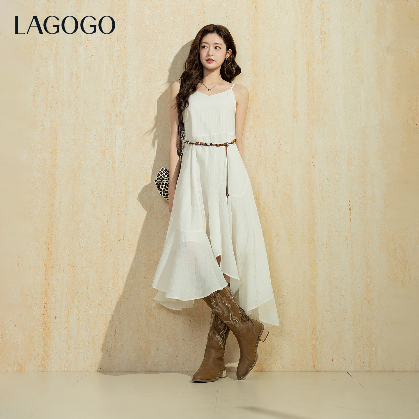 LAGOGO民族风时尚吊带裙女拉谷谷2026春新款仙气不规则裙摆连衣裙