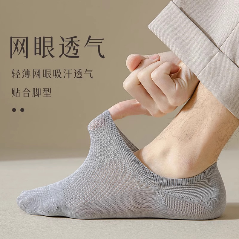船袜男夏季薄款纯棉防臭袜子男网眼吸汗透气夏天男士浅口隐形短袜