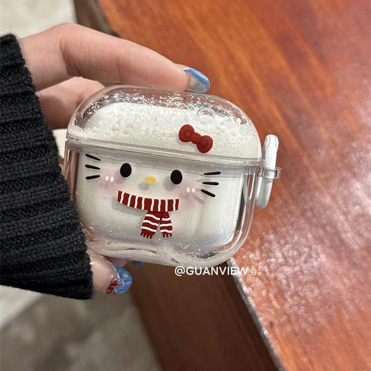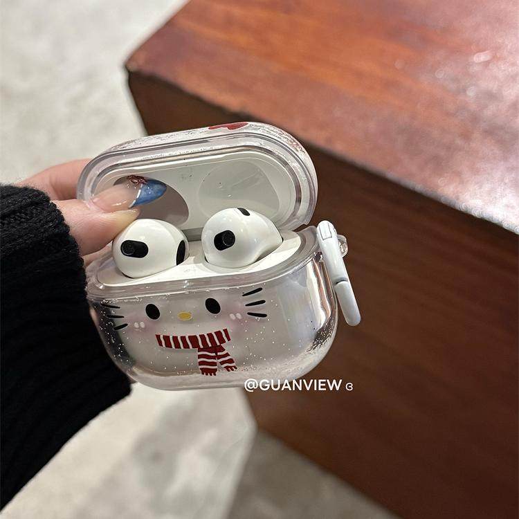guanview ins秋冬卡通围巾腮红kitty适用AirPods4保护套AirPodsPro苹果耳机套2代无线蓝牙3代透明流沙Pro2硬