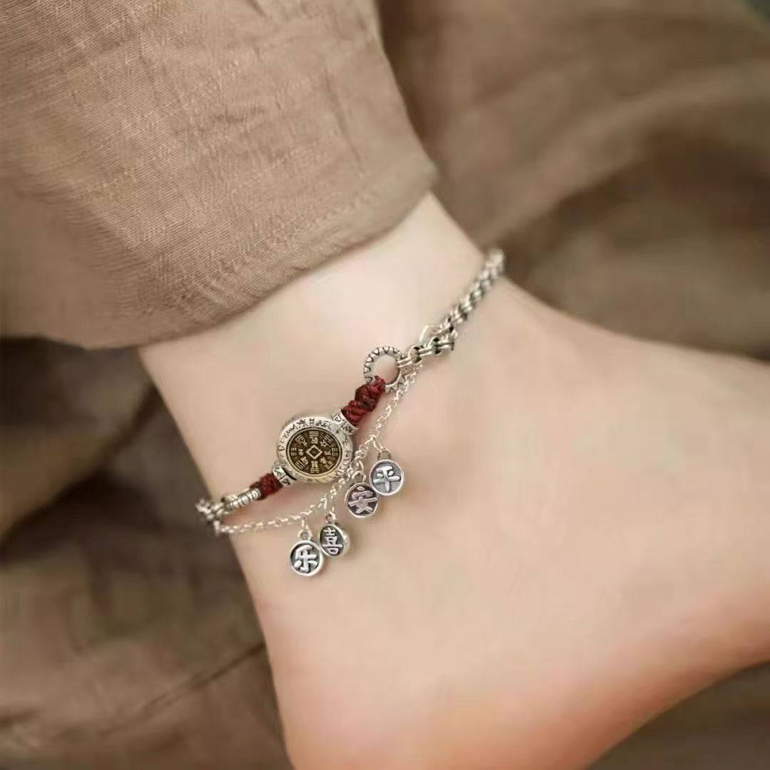 复古平安喜乐脚链高级感夏天高颜值女款轻奢高级感百搭脚饰