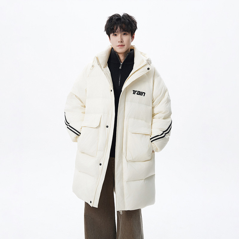 回力织带拼接中长款羽绒服男士秋冬季2025新款青少年冬装加厚外套