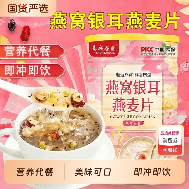 燕窝银耳麦片早餐减即食冲饮无蔗糖低正品旗舰店牛奶脂官方正品
