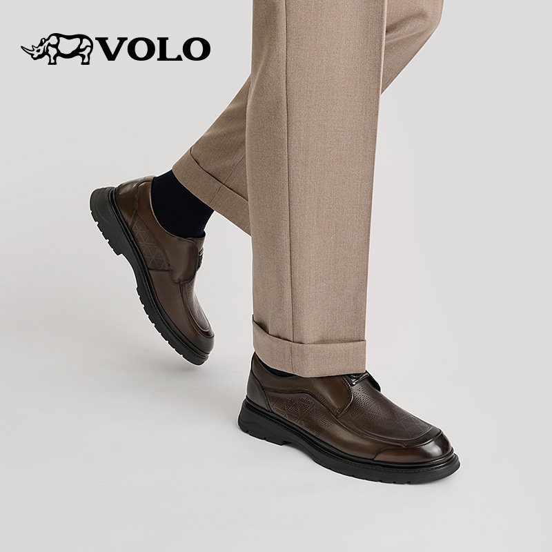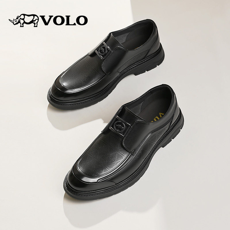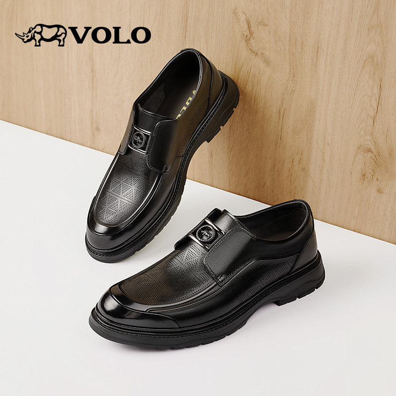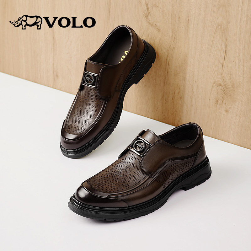 VOLO犀牛皮鞋男款2025新款夏季男鞋真皮镂空透气休闲男士商务皮鞋