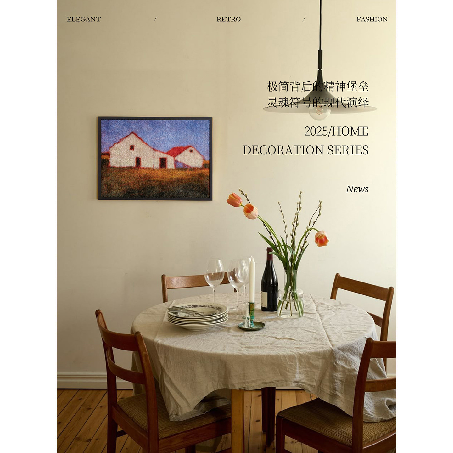 蜡笔派乡村静谧挂画现代法式复古客厅玄关装饰画轻奢高级感艺术画
