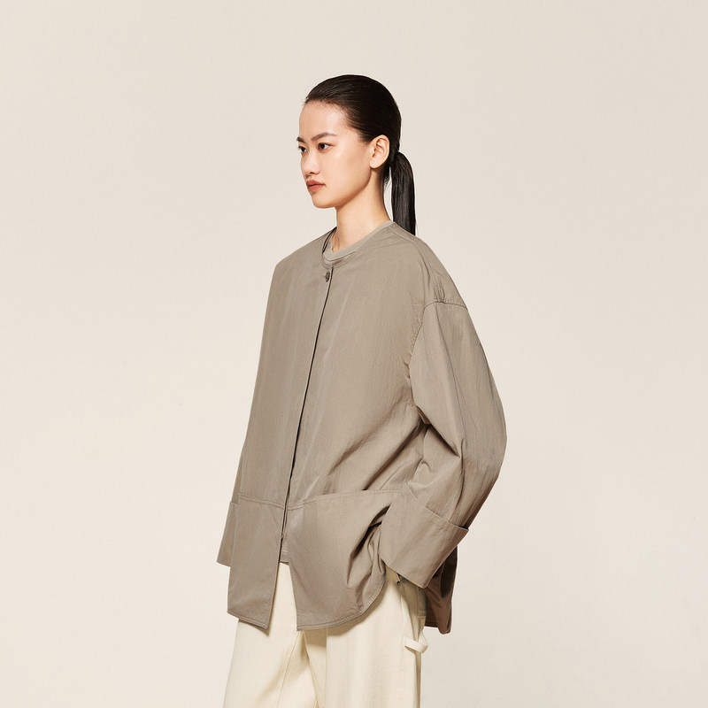 LESS春秋一粒扣夹克女休闲宽松无领极简百搭廓形外套2O061472H