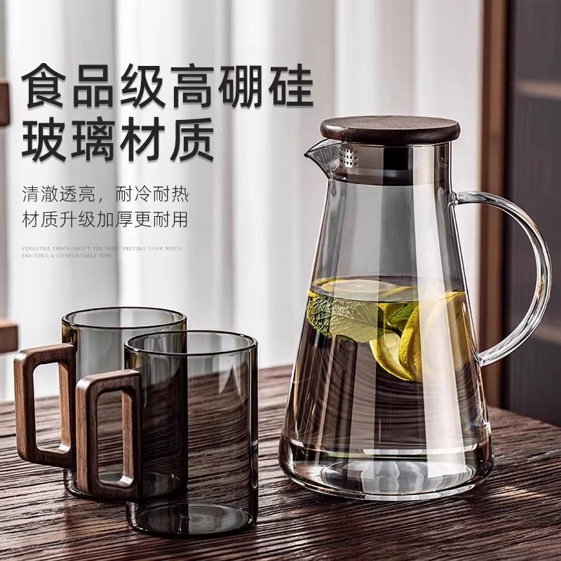 冷水壶玻璃耐高温家用大容量果汁壶水杯套装凉食品级高硼硅开水