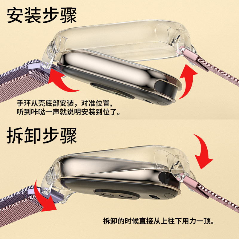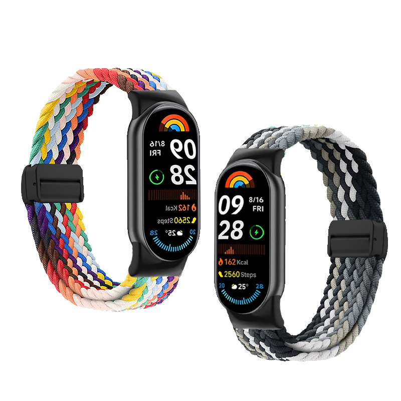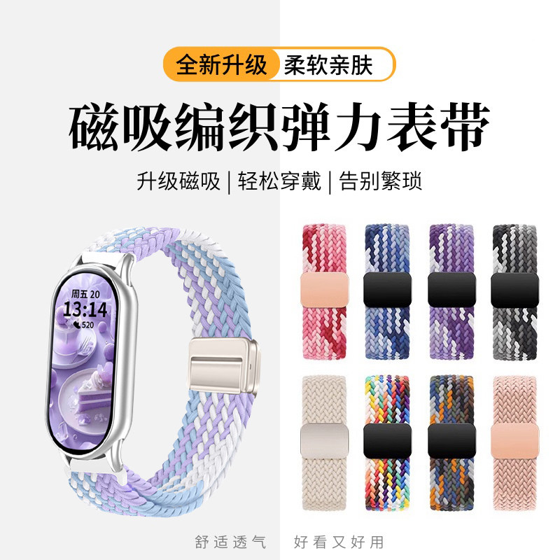 适用小米手环10/9手表带链编织磁吸8手表链nfc版智能运动手腕带高级感夏天女生代手表配件红色卡扣回环尼龙